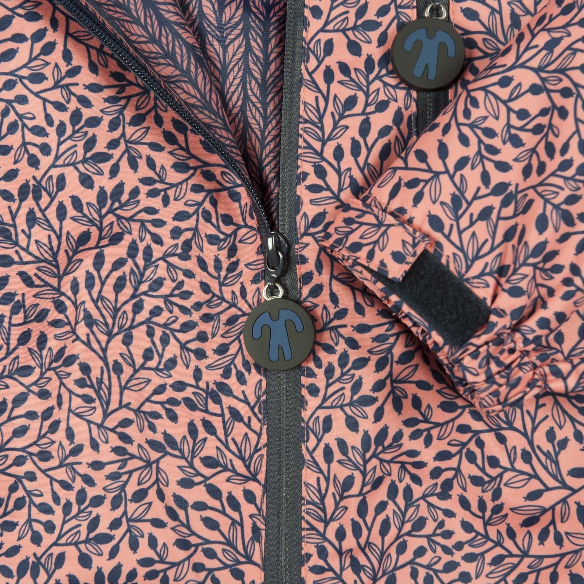 Huvan och ärmsluten är justerbara med kardborreband.