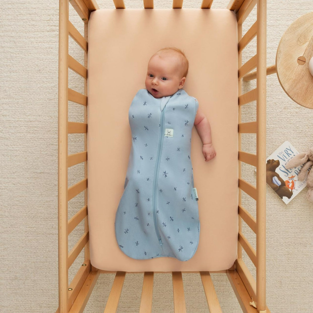 ErgoPouch-babysovsäcken med TOG-märkning håller barnet varmt utan behov av ytterligare täcke.