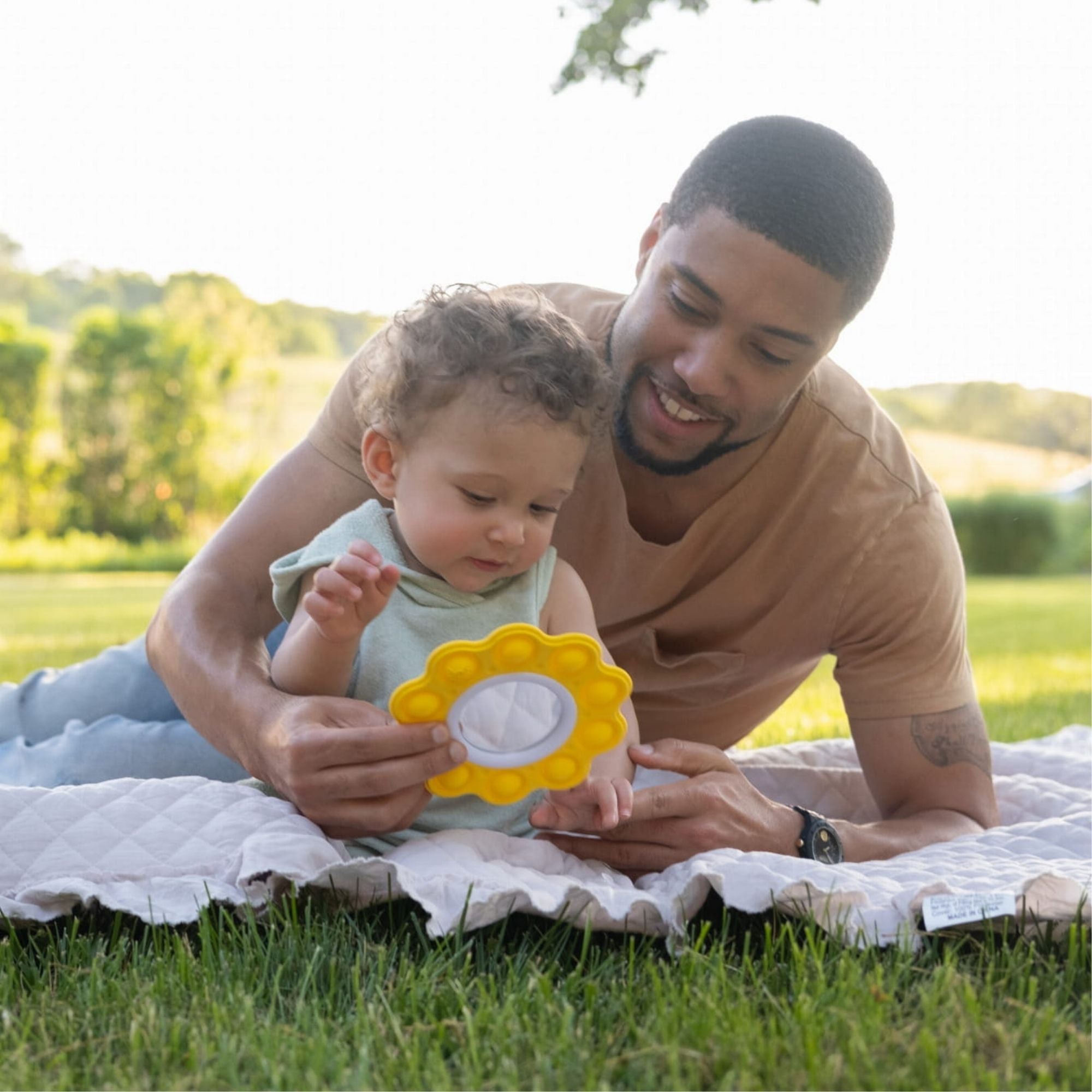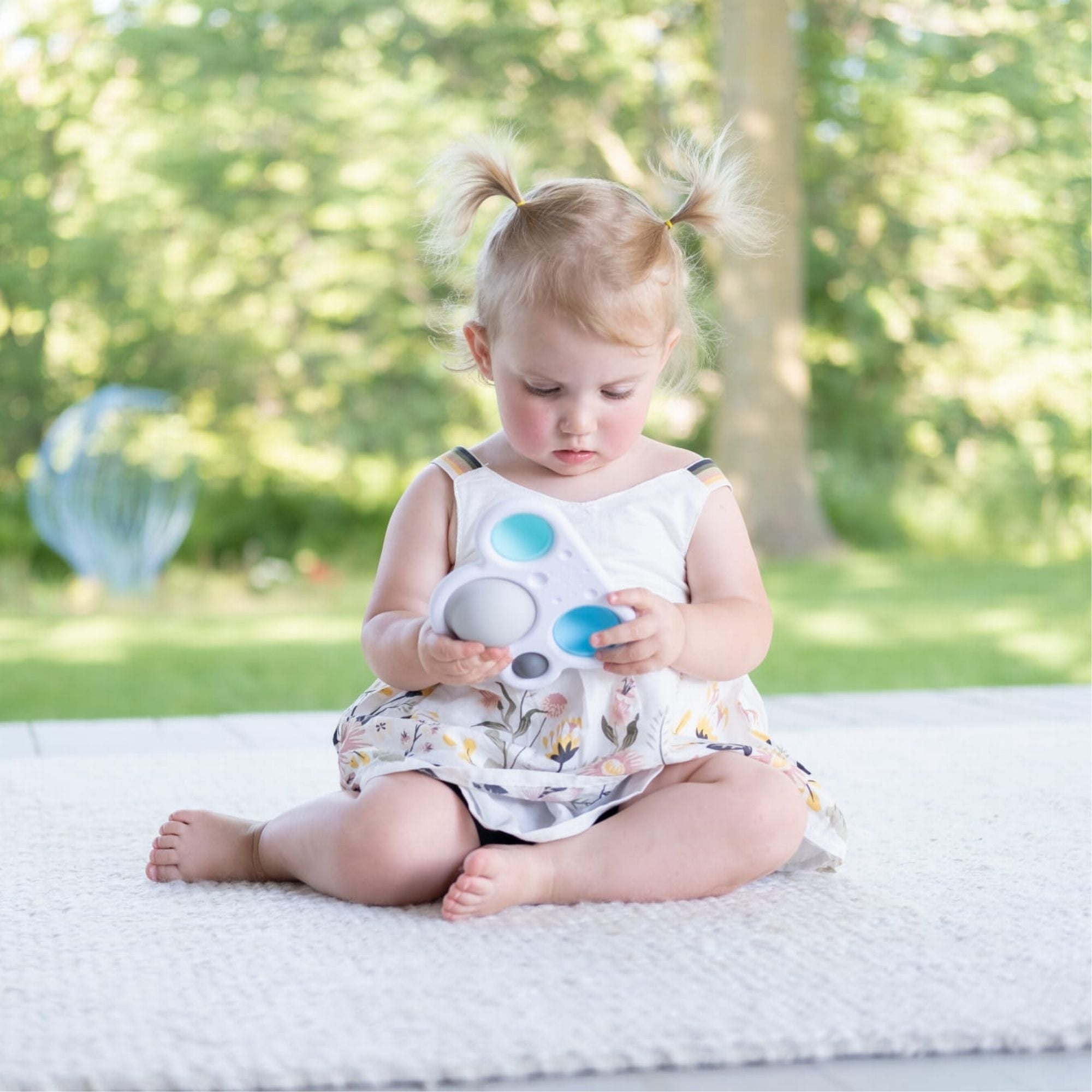 Den klassiska Fat Brain Toys Dimpl leksaken med färgglada bubblor i nya Sun and Cloud - innovativ, färgglad, med en modern design för att stimulera barnets sinnen.