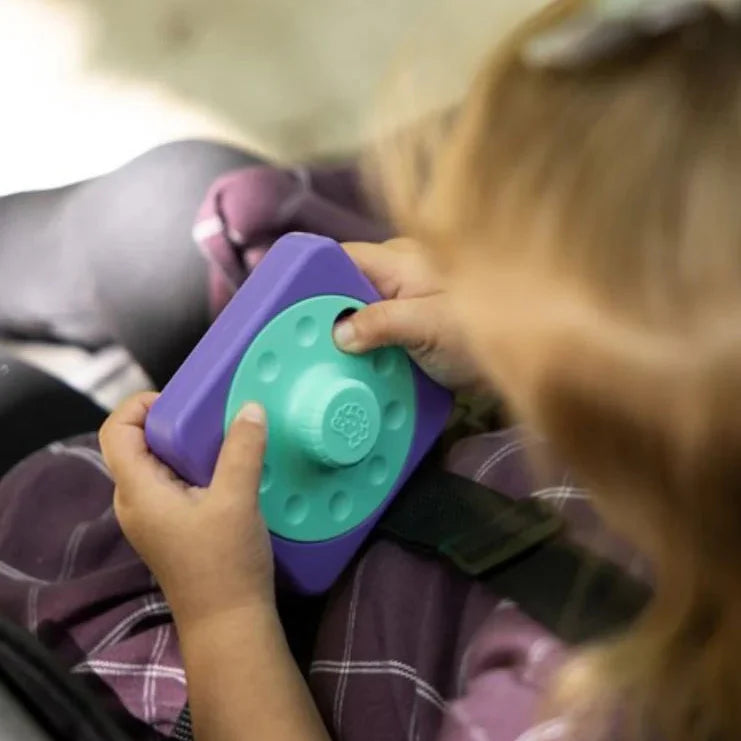 Den sensoriska kvadraten med en ratt som påminner om en gammal telefon uppmuntrar till konstant snurrande och räknande, och de tydligt hörbara klickarna stimulerar hörselsinnet ytterligare.