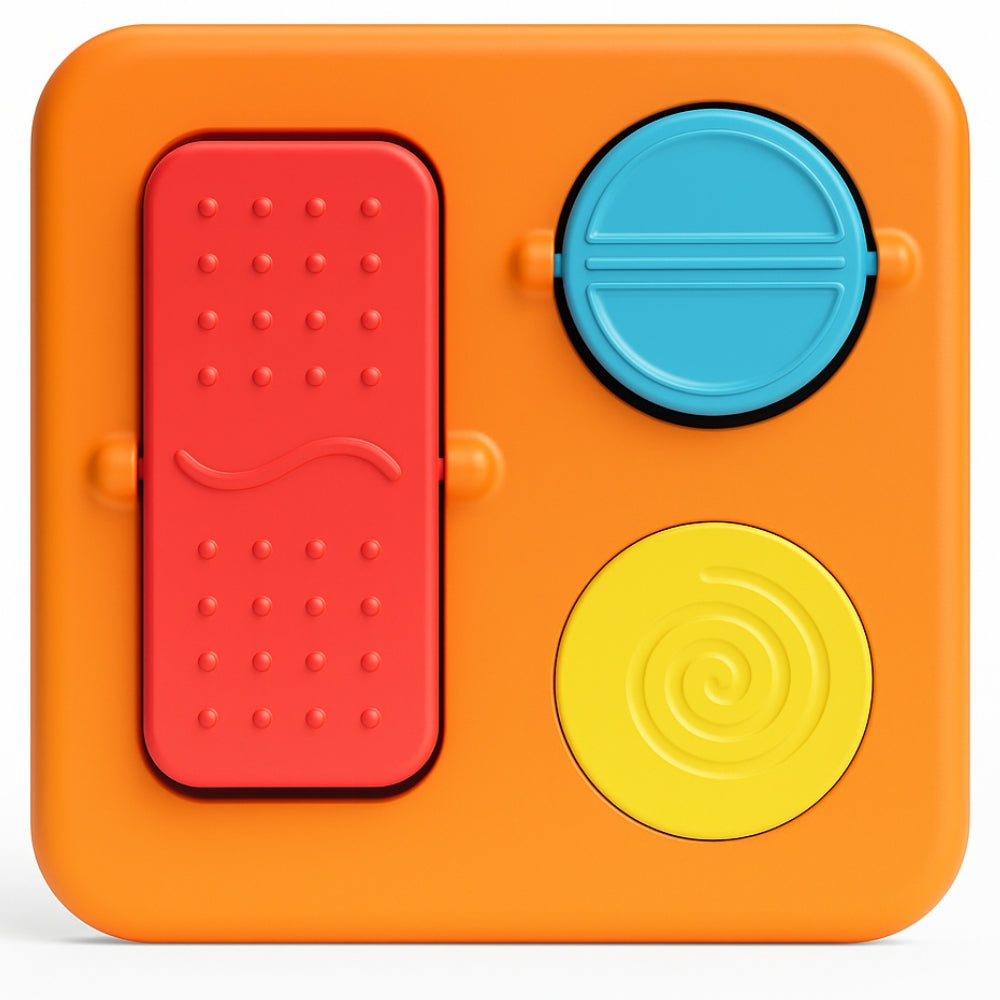 Fat Brain Toys sensoriska kvadrat från PlayTab-sortimentet är ett utmärkt sätt att ha engagerande lek som utvecklar finmotoriken och uppmuntrar ditt barn att utforska hur strömbrytare och knappar fungerar.