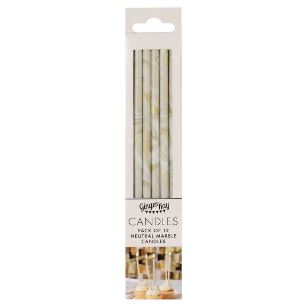 Gingerray Nude och Champagne Gold Tall Marble Birthday Cake Candles.