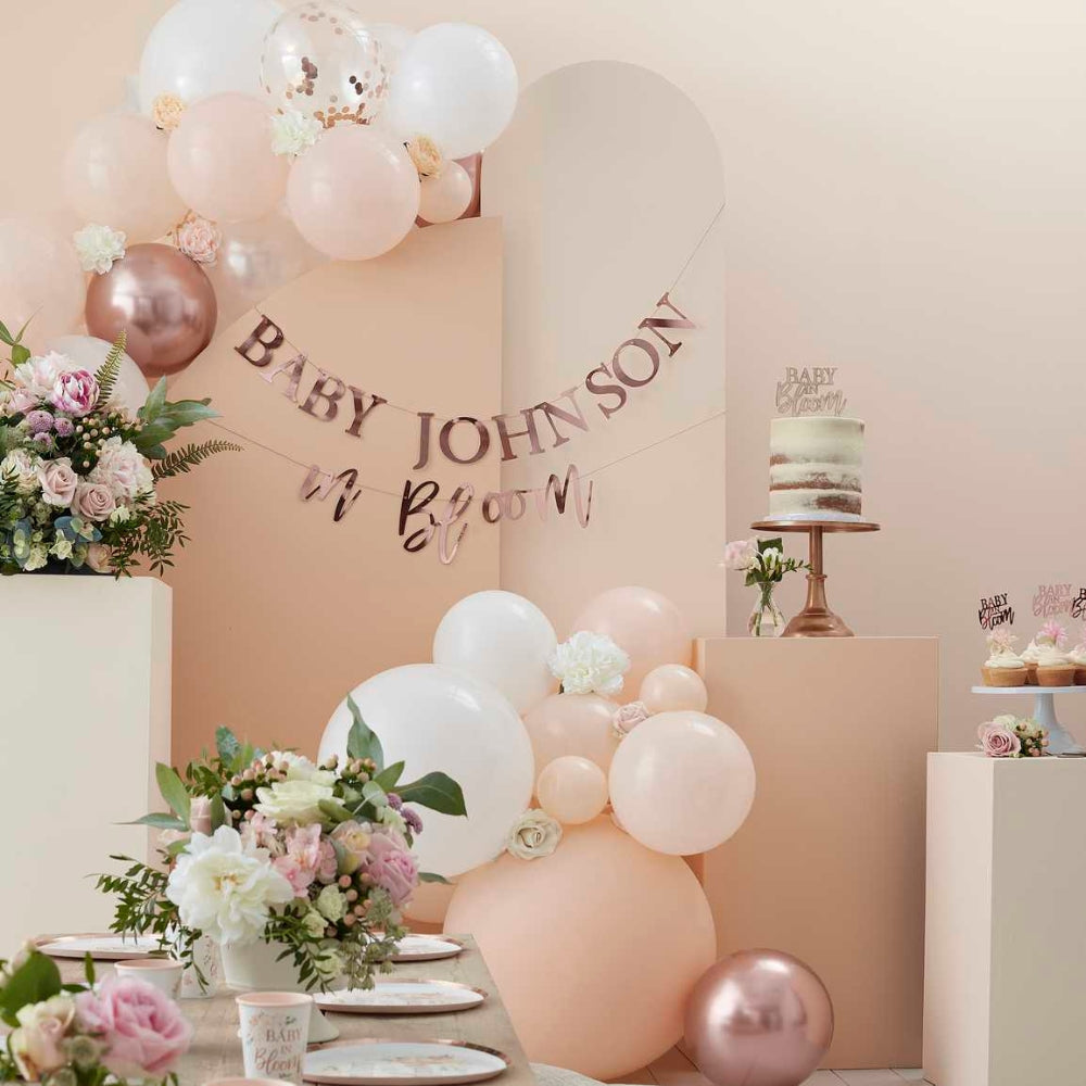 Latexballonger persika, vit &, roséguld girland set från Gingerray.