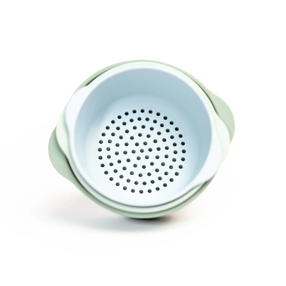 - Setet innehåller: 3 silikonskålar som kan staplas (inklusive ett sikt)