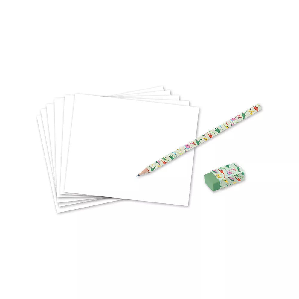 Teckna steg för steg för barn från Janod låter dig skapa unika bilder som föreställer olika dinosauriearter.
