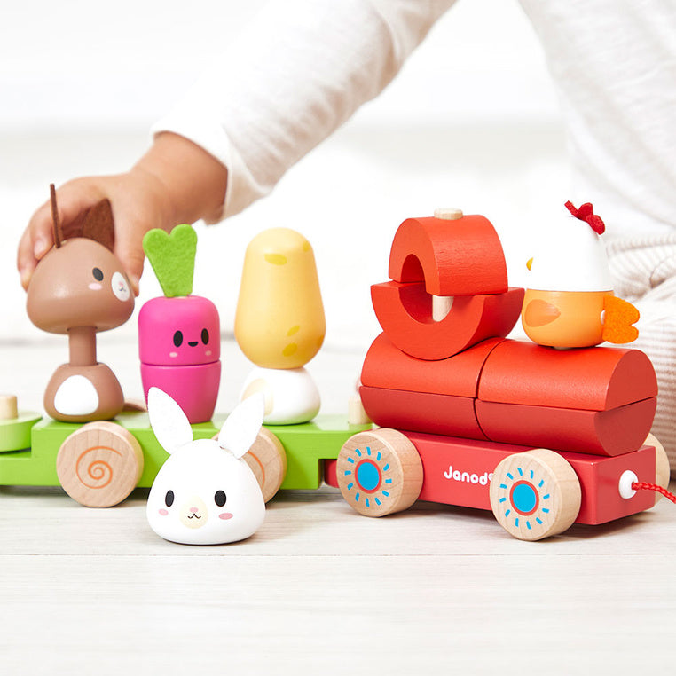 Janods tåg för barn utvecklar kreativiteten och uppmuntrar till fritt experimenterande, och dess originella design gör att setet sticker ut från andra leksaker.