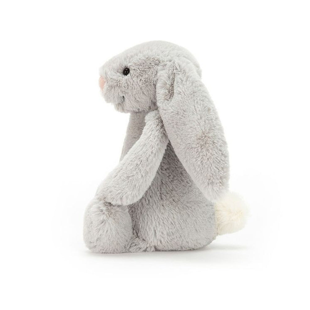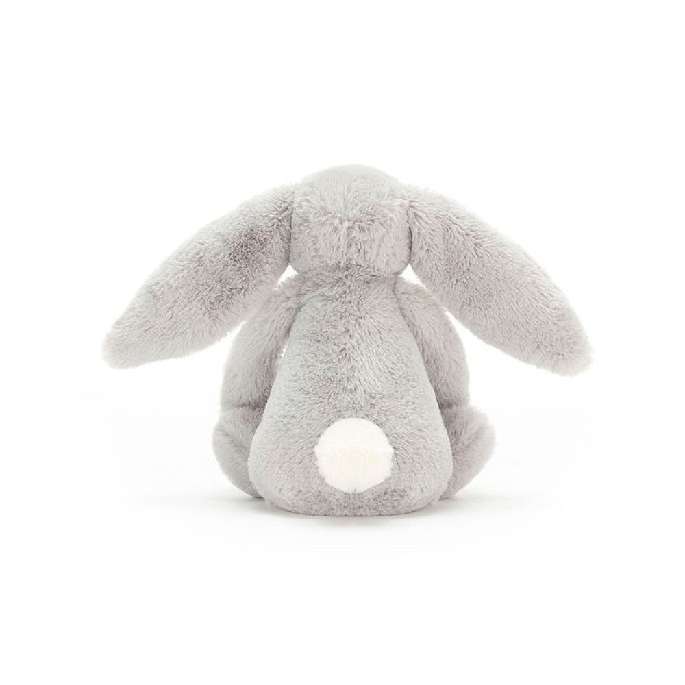 Den grå 18 cm kaninmaskoten från Jellycat är inte bara ett gosigt gosedjur, utan utstrålar också ömhet och charm.