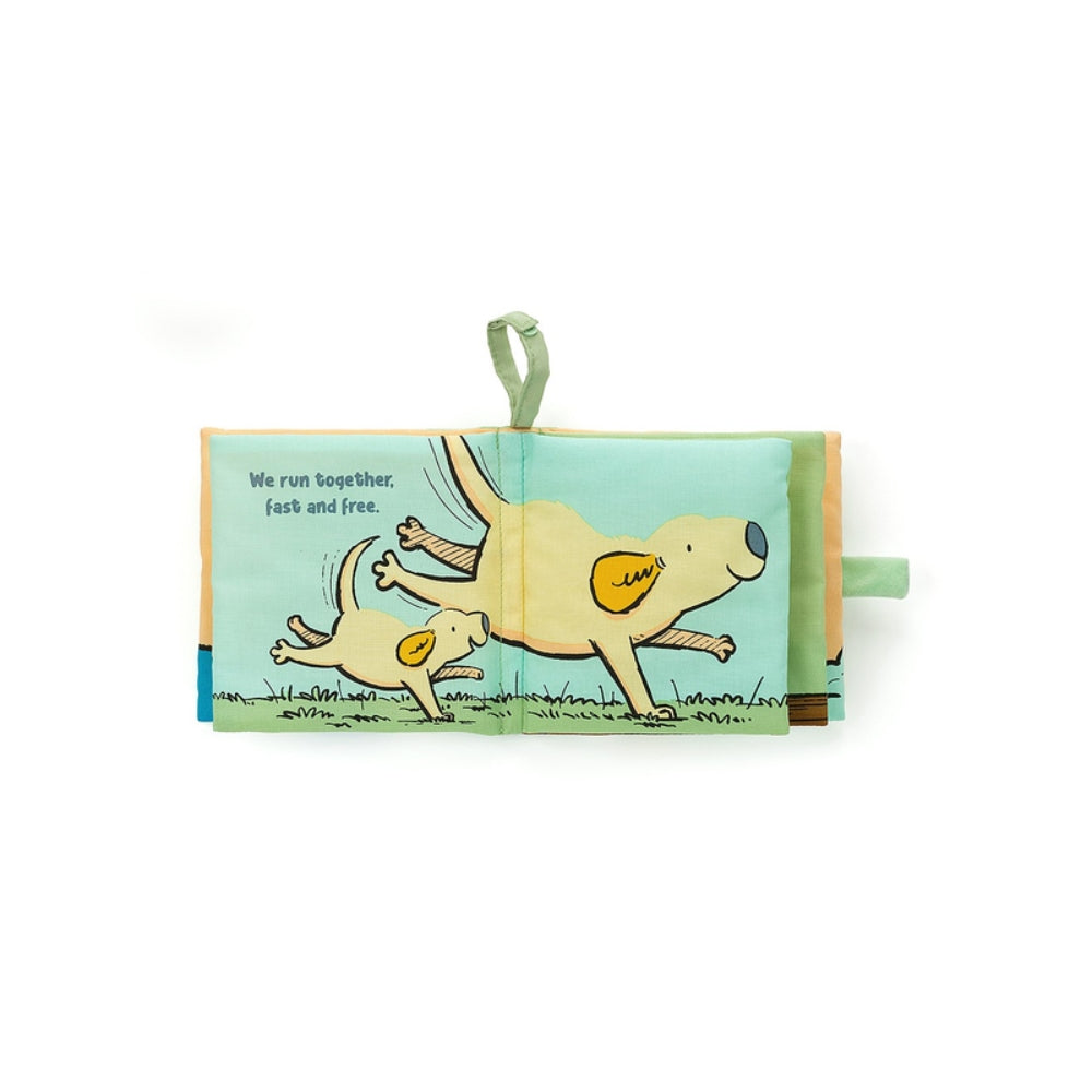 Daddy Loves Me är en unik sensorisk bok från Jellycat, tillverkad av robust tyg och med vackra illustrationer på engelska.