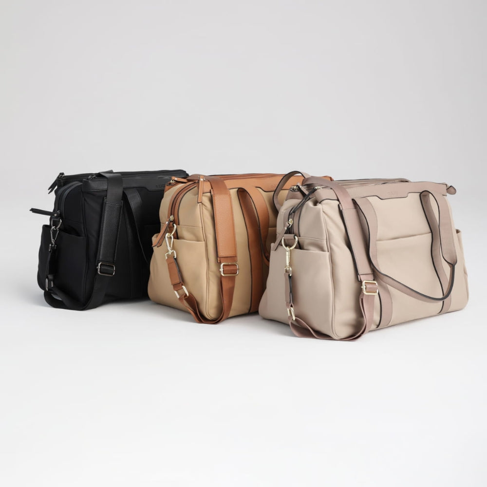 Tillverkad av vattenavvisande och lättrengjord nylon av högsta kvalitet med tillbehör i ekologiskt läder.