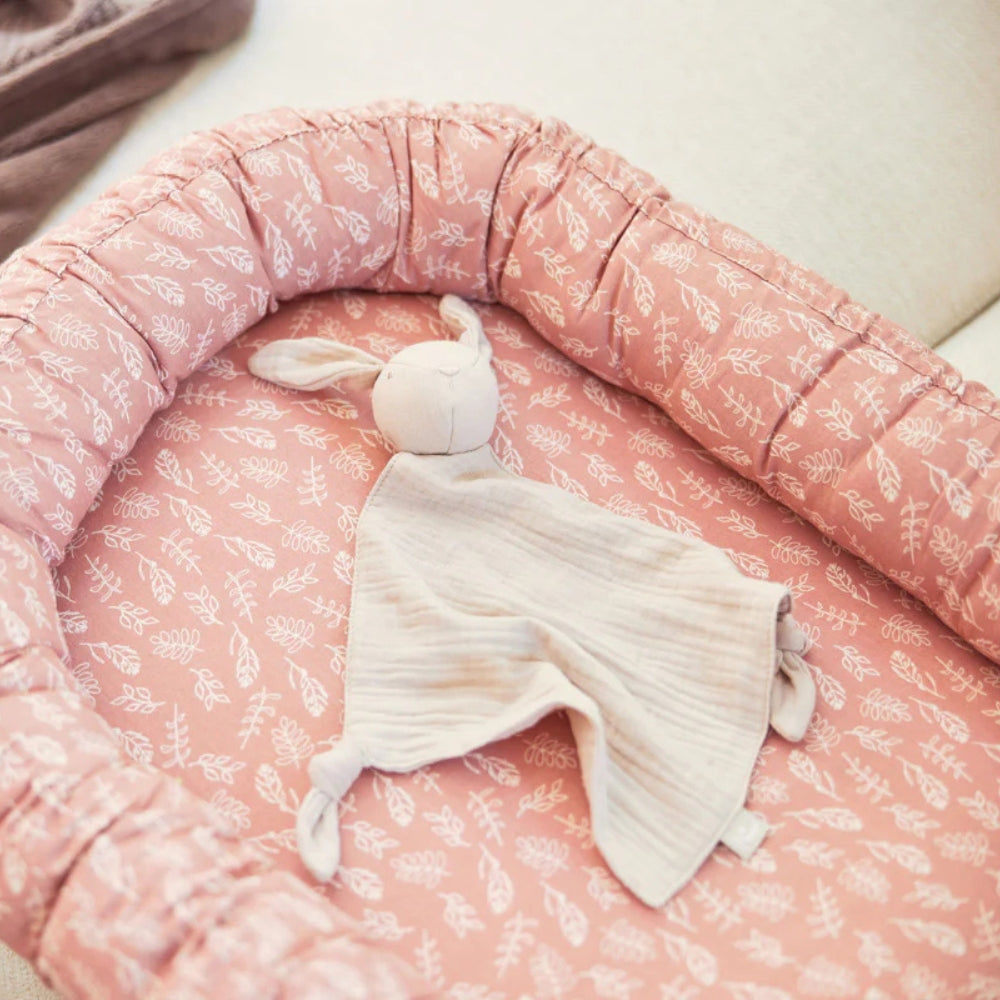 Denna bedårande kaninformade babykramare är tillverkad av extra mjuk, skrynklig muslin som är skonsam mot barnets hud och behaglig att ta på.
