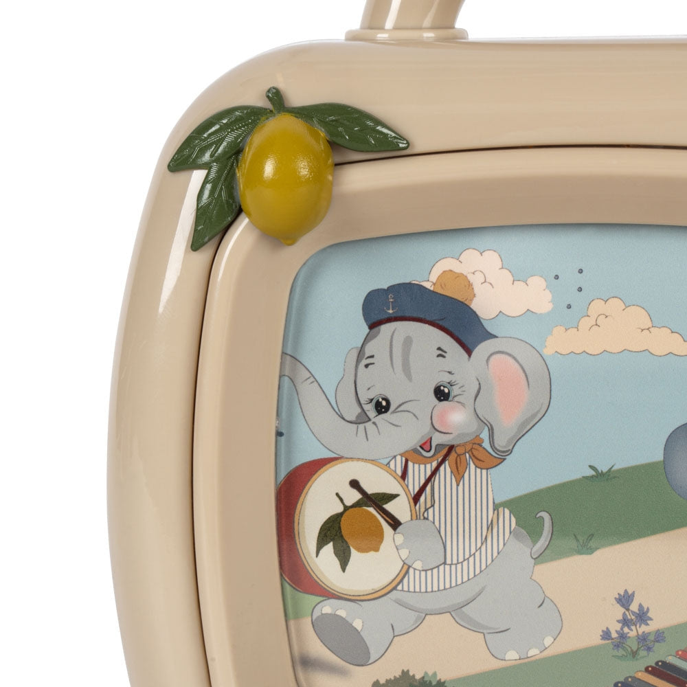 Den klassiska designen väcker nostalgiska barndomsminnen, och de rörliga bilderna som rullar över skärmen i takt med en lugn melodi får ditt barn att med nyfikenhet följa vad som händer på skärmen.