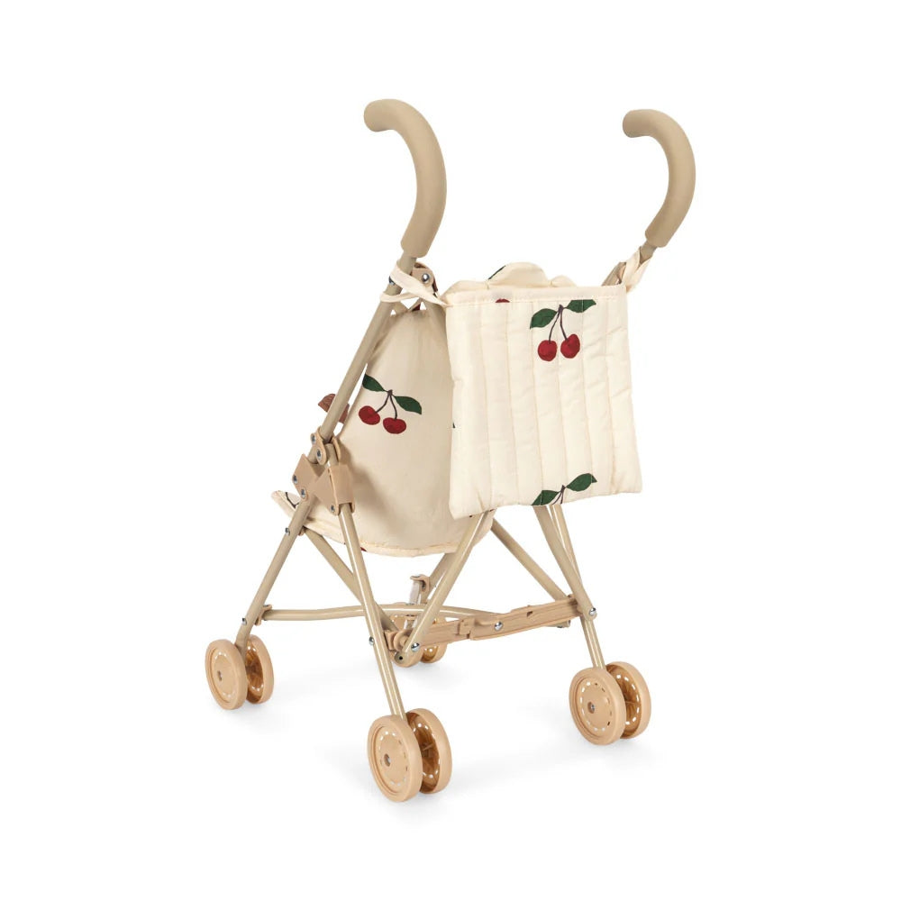 Konges Slojd Cherie-setet är den perfekta presenten för de yngsta som älskar att leka mamma, pappa, barn. Det innehåller en klassisk dockvagn i ett tidlöst körsbärsmönster och en bedårande docka, som tillsammans bildar ett set som är klart att leka med direkt ur förpackningen.