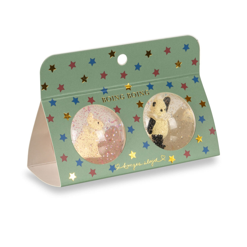 Konges Slojd Bollar med glitter och 3D-figurer av kanin/panda, 2 st.