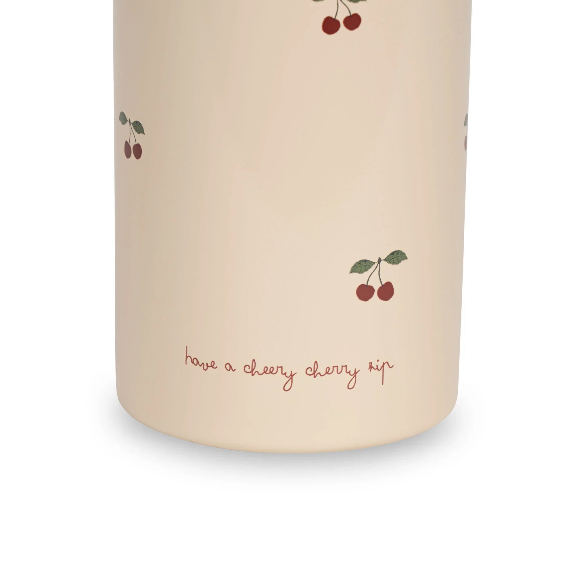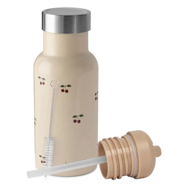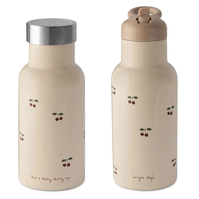 En fantastisk termoflaska för barn från Konges Sløjd med ett sött körsbärsdesign och två utbytbara lock.