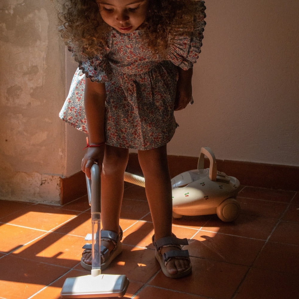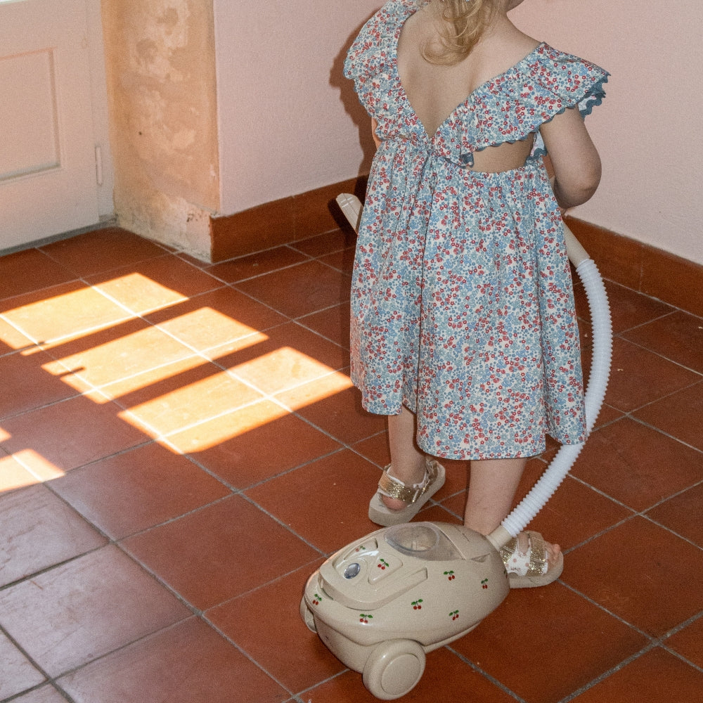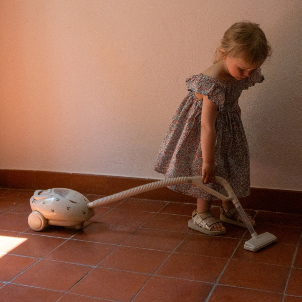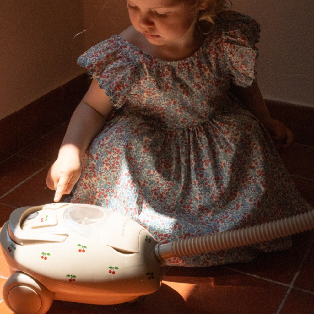 Leksaksdammsugaren med vackert körsbärsmotiv är en elektronisk, sladdlös leksak som är utformad med de små i åtanke.