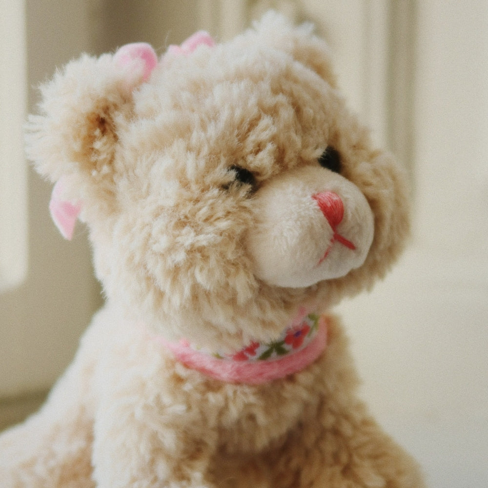 Konges Slojd presenterar en bedårande plyschkatt med en mjuk klocka inuti, som ger ett lugnande skramlande ljud när man leker med den.