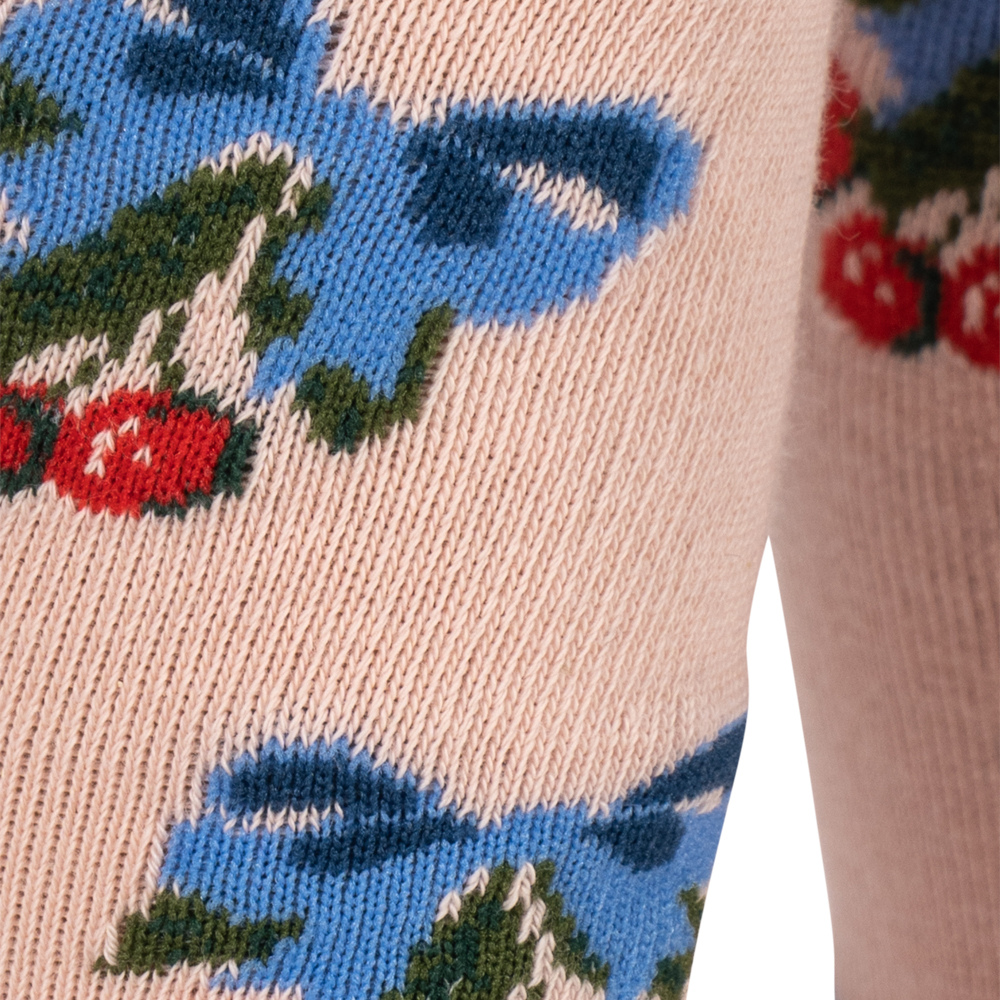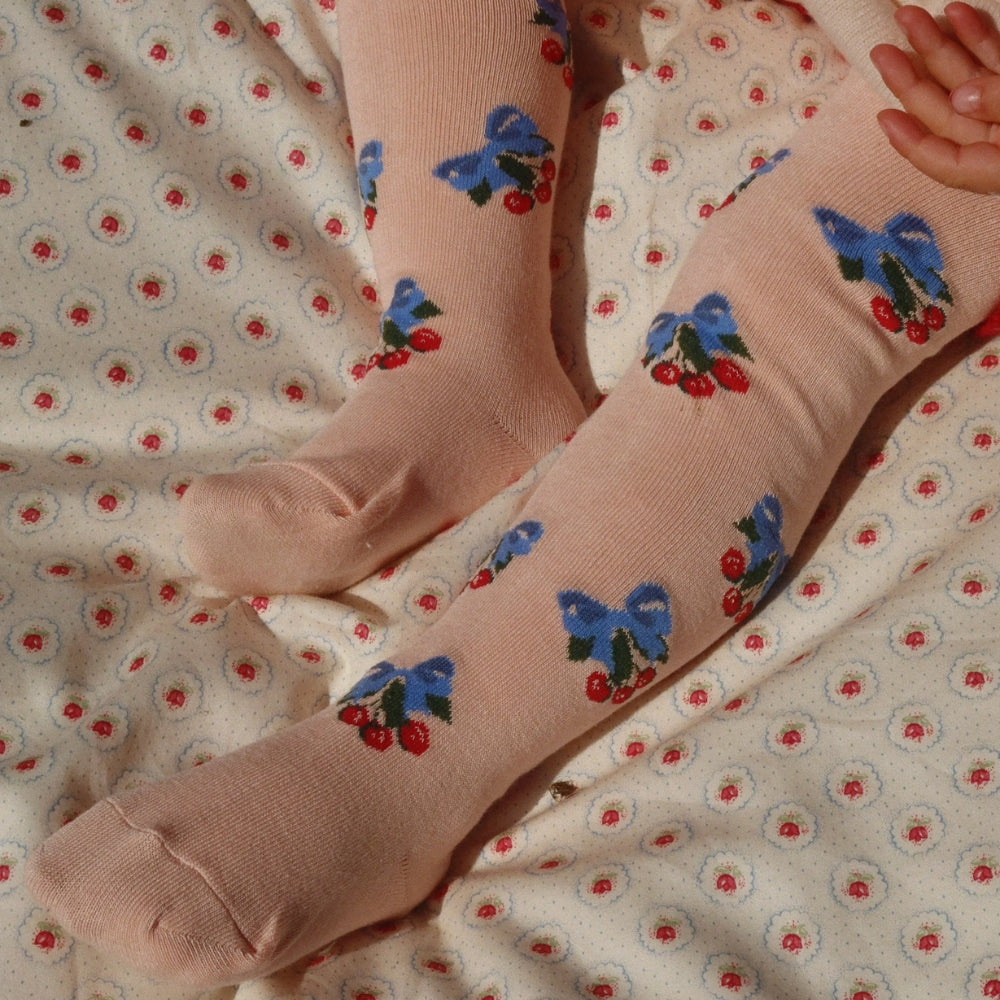 Das zarte Jacquard-Kirsch- und Blumenmuster verleiht ihnen einen niedlichen, mädchenhaften Touch, der für die Marke Konges Slojd charakteristisch ist.