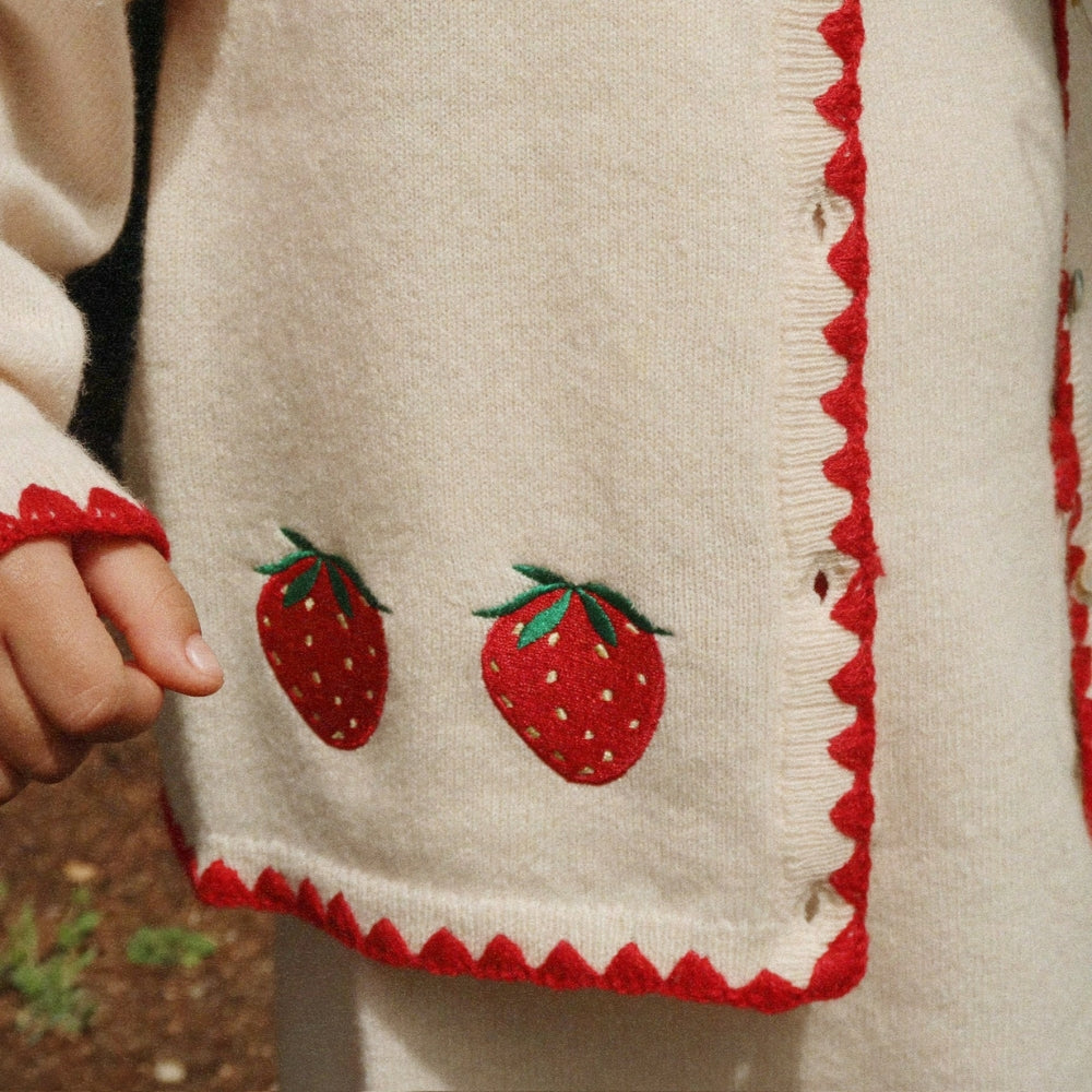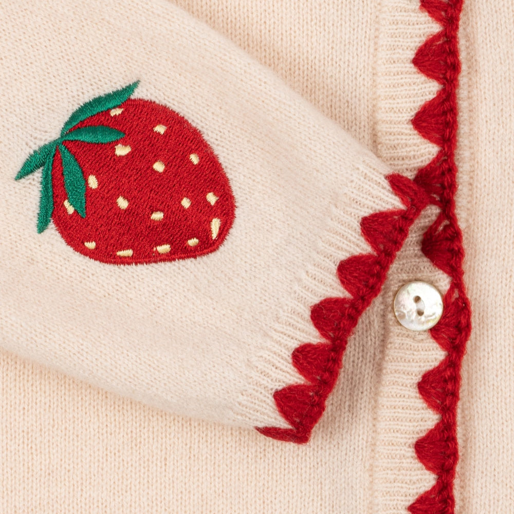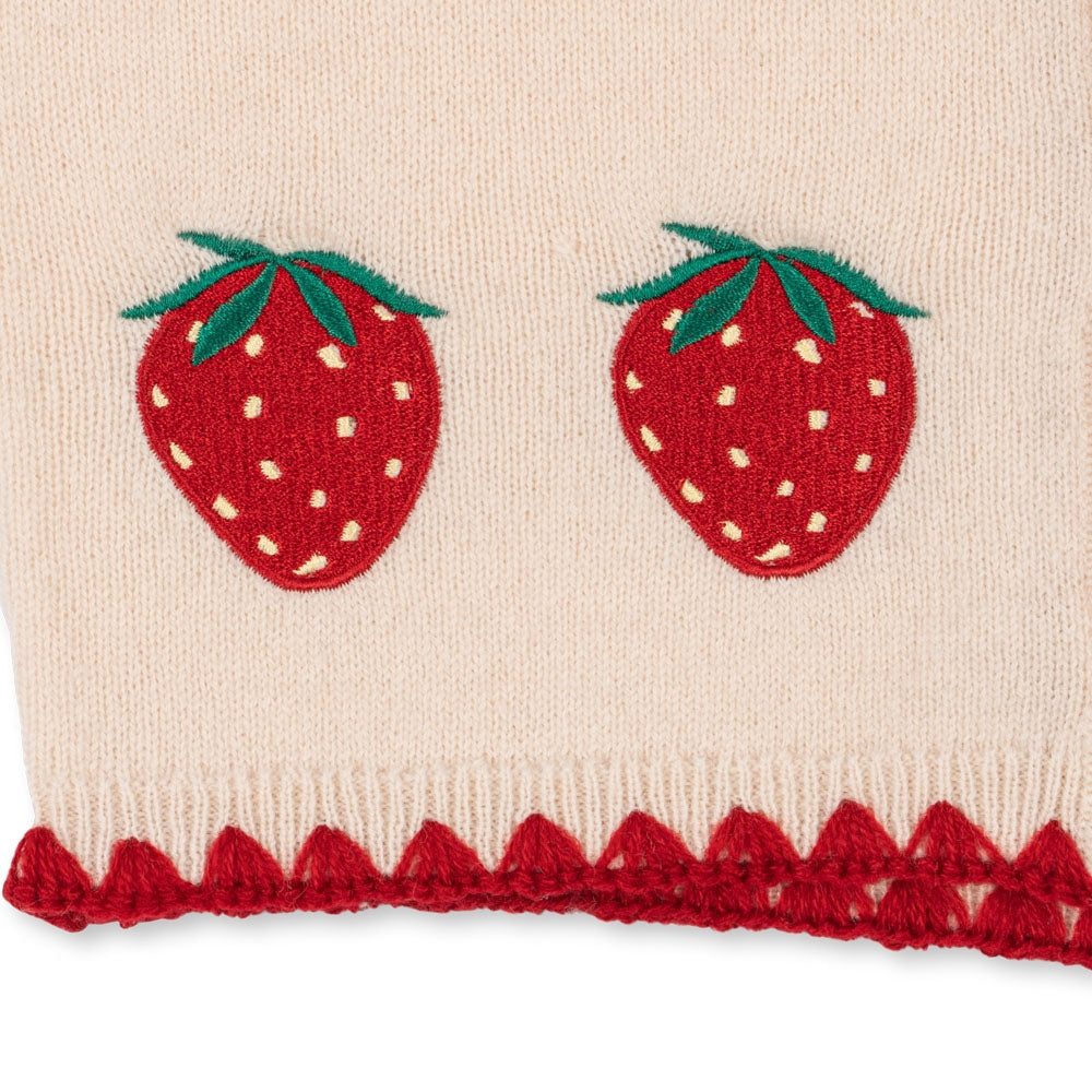 Modellen Collette har ett subtilt broderi i form av jordgubbar och en kontrastfärgad kant som ger en speciell touch.