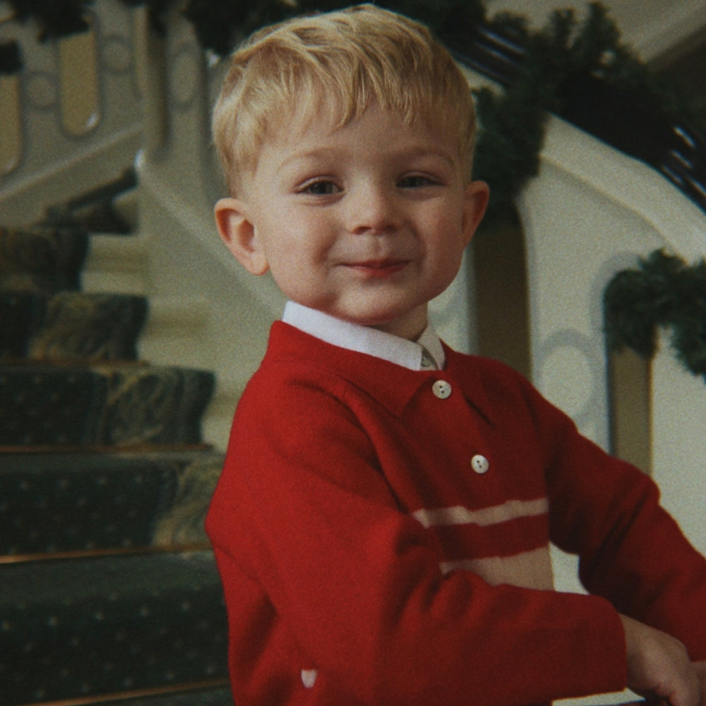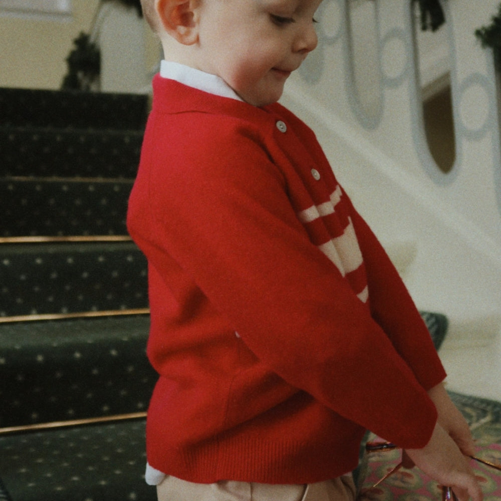 Den klassiska kragen, knäppningen och de ribbade muddarna ger den en elegant men ändå avslappnad känsla, perfekt för både dagis och familjeutflykter.