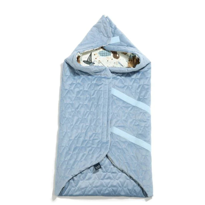 En extremt praktisk filt som enkelt fästs med kardborreband för att skapa en huva som skyddar ditt barns huvud.