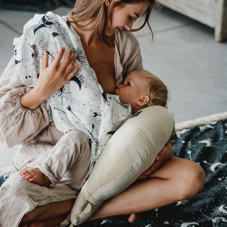 Den är perfekt som amningskudde eller som kudde för mamman under graviditeten.