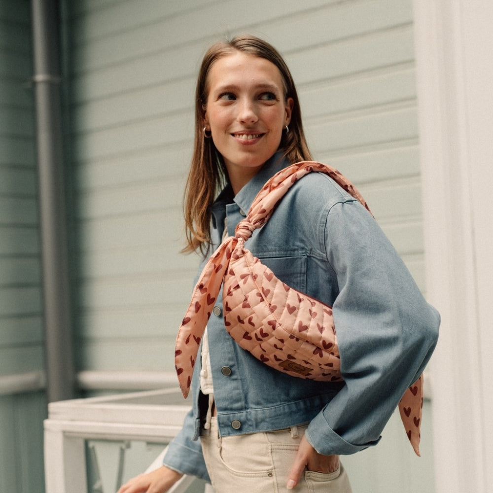 Den kan bäras på många olika sätt: klassiskt på höften, snyggt över axeln eller charmigt på armen.