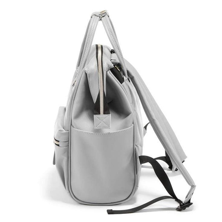 Förutom remmarna för att bära på ryggen har den två handtag som kan knytas ihop med ett läderband och bäras som en väska.