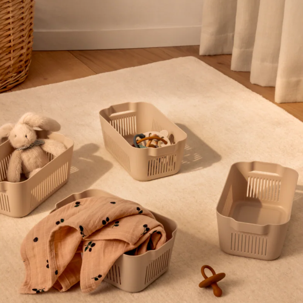 En uppsättning korgar hjälper till att ta hand om de små sakerna: små leksaker, strumpor, konsttillbehör och alla skatter som ett litet barn har.