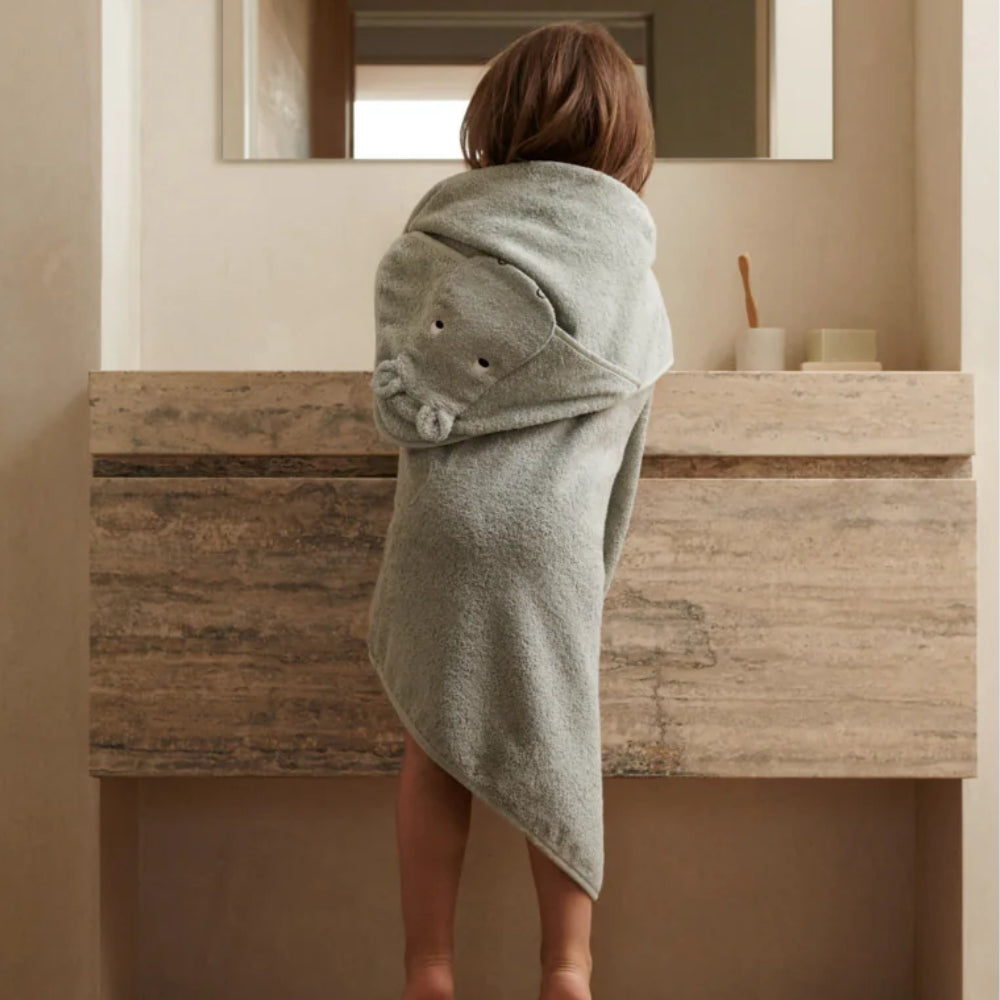 Liewoods babyhandduk är perfekt att använda hemma vid det dagliga badet, men också vid poolen eller på stranden.