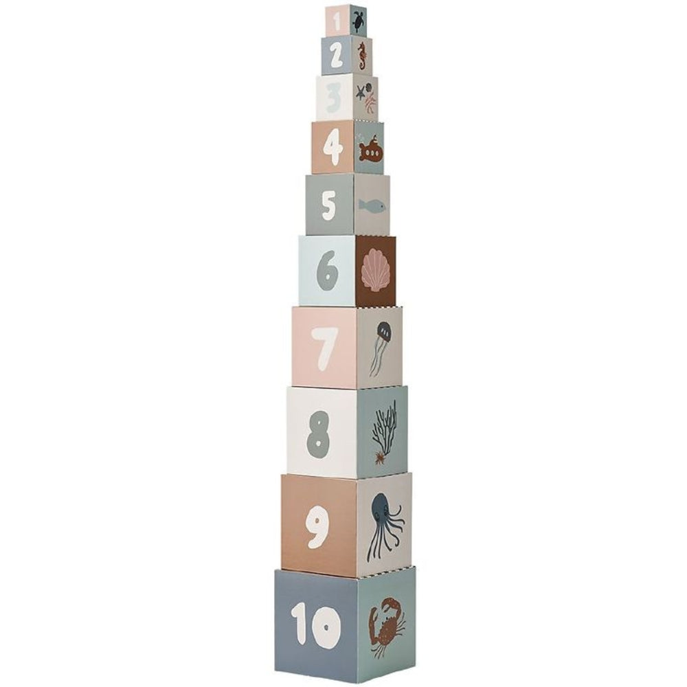 Klossarna har ett havsdjurstema och varje kloss är numrerad, där den minsta är 1 och den största är 10.