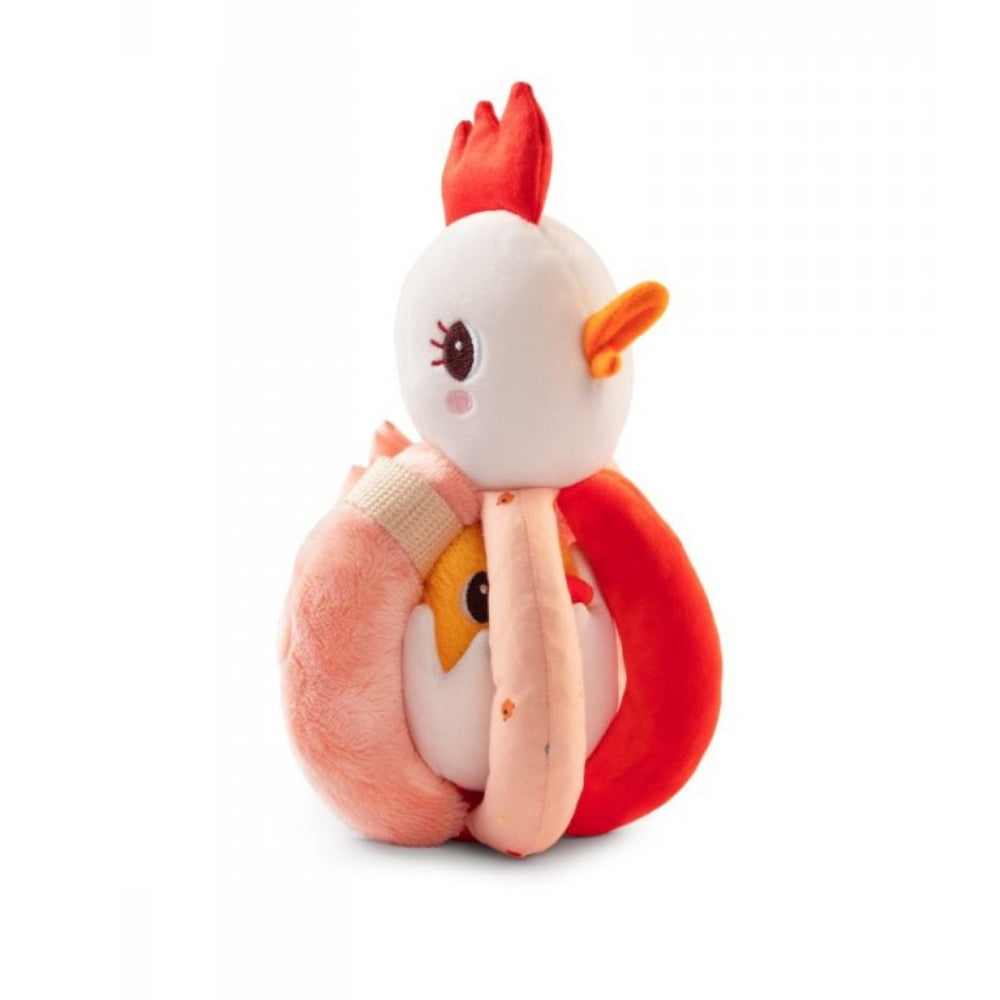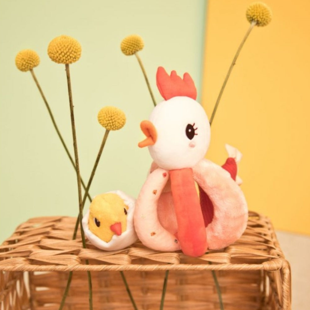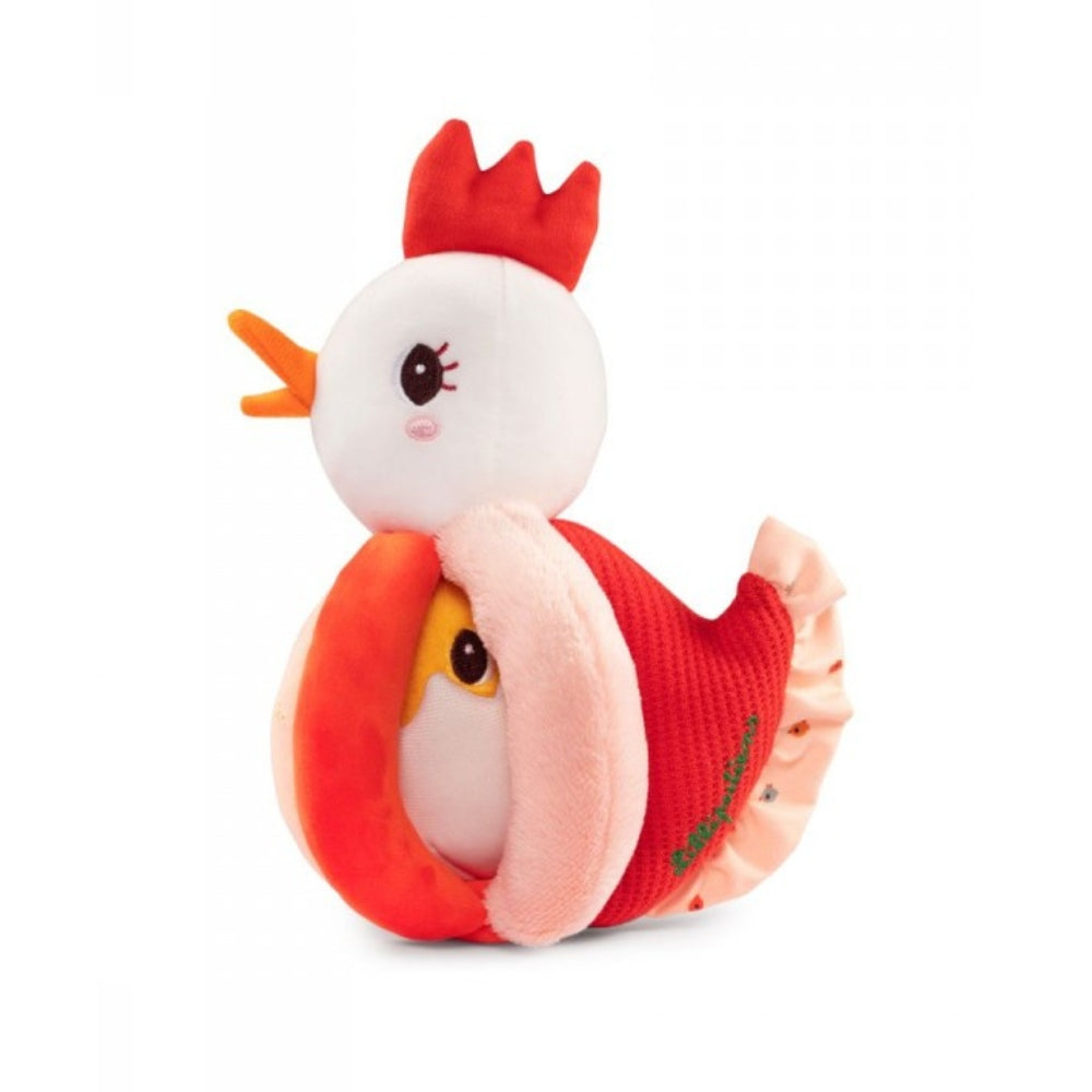 Lilliputiens babyskallra har två skallror, en placerad i huvudet på cockapoonen och den andra inuti kycklingens skal.