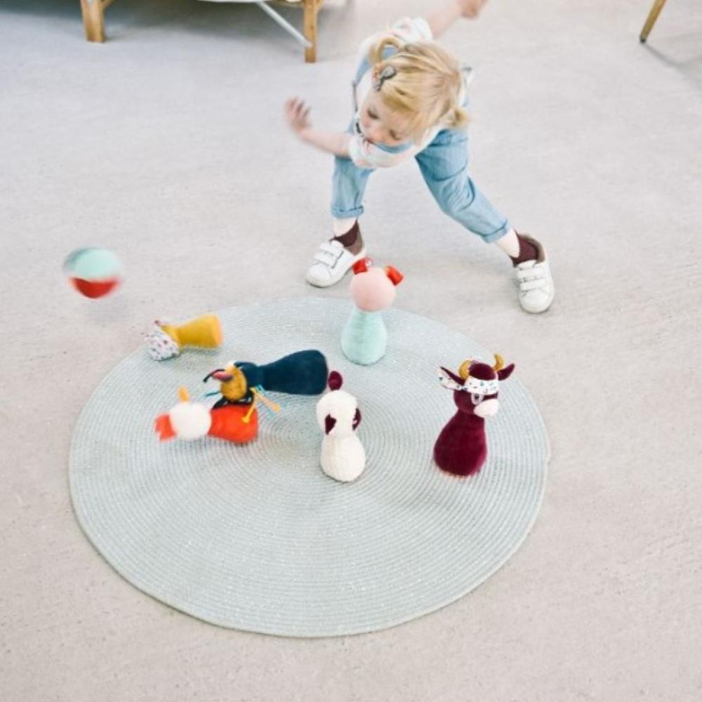 Bell ball bowling från den nya Farm-kollektionen från det belgiska varumärket Lilliputiens är en utvecklingsleksak för små barn.