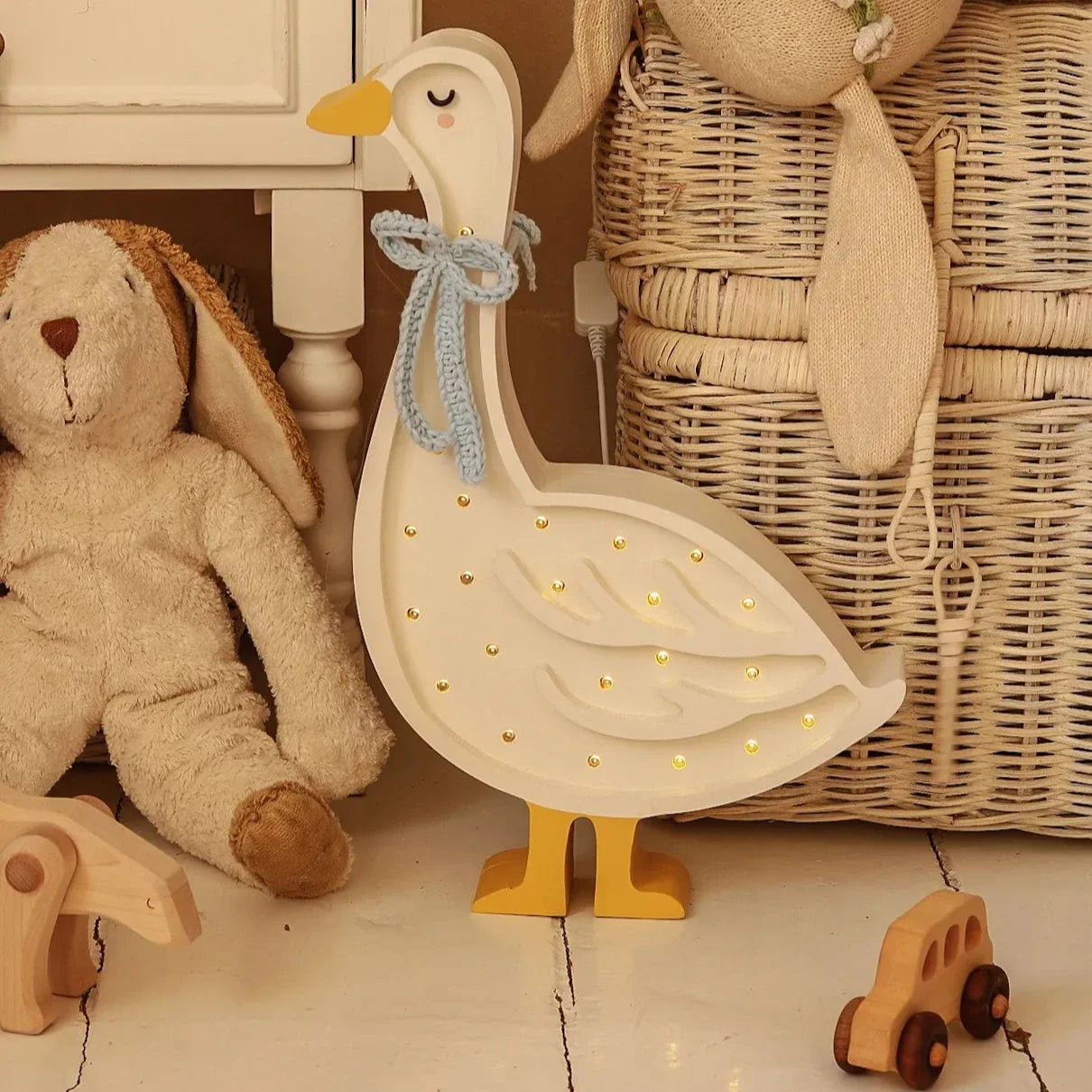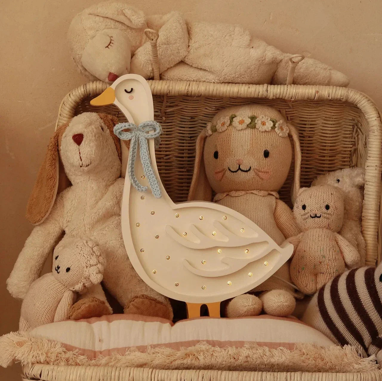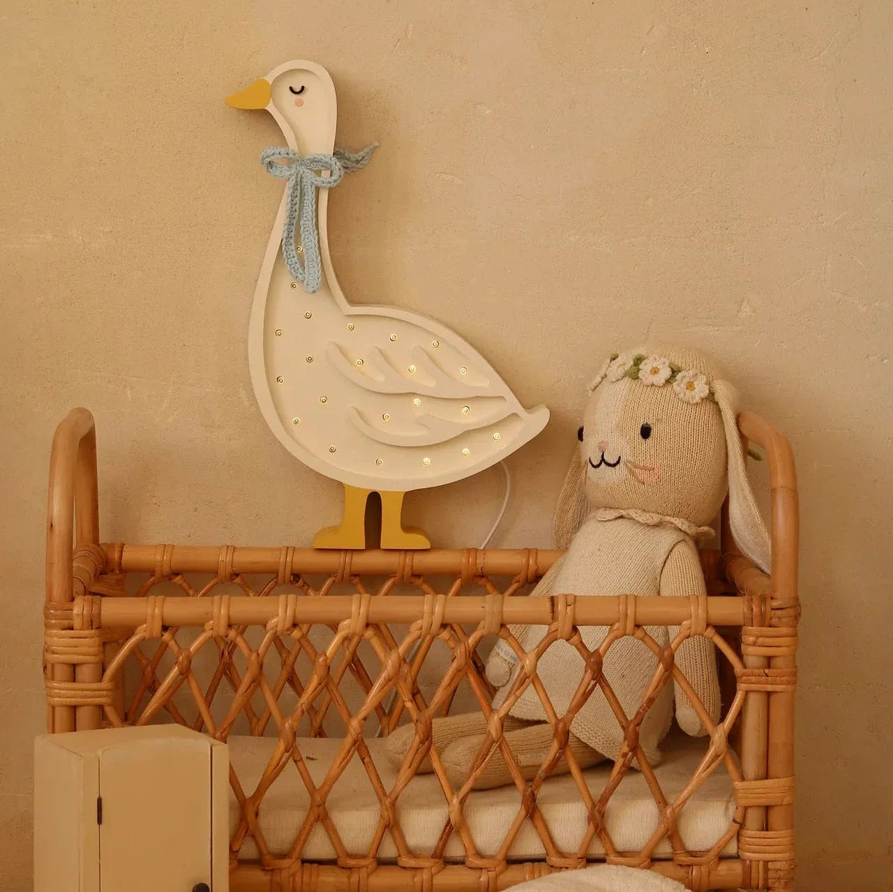 Lampan Little Lights i form av en gås är det perfekta tillskottet till ett barnrum och skapar en magisk atmosfär under lek och kvällsläsning.