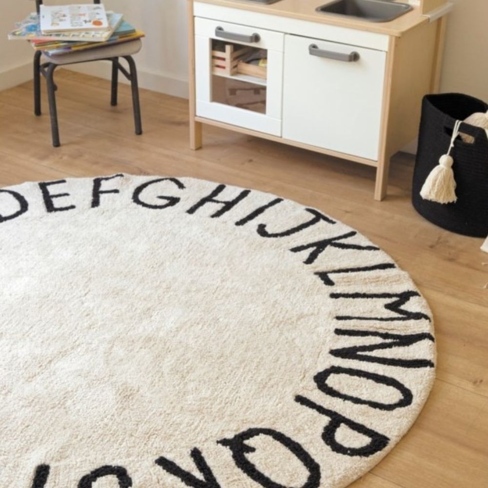Lorena Canals Rund matta för barn ABC Naturlig Svart 150 cm