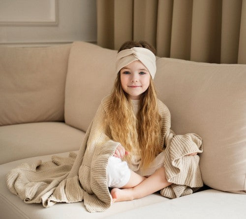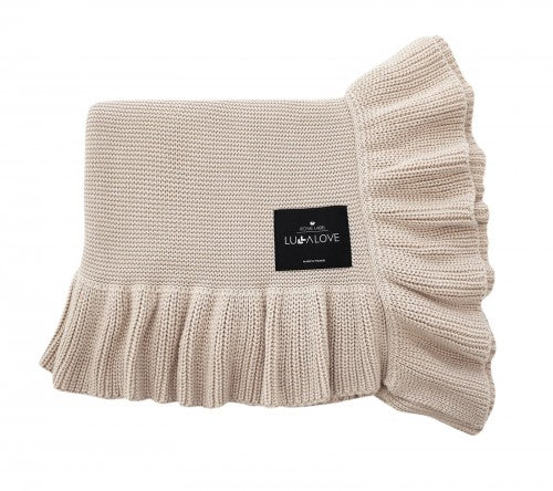 Härlig babyfilt med volang för året runt i beige färg från Lullalove.