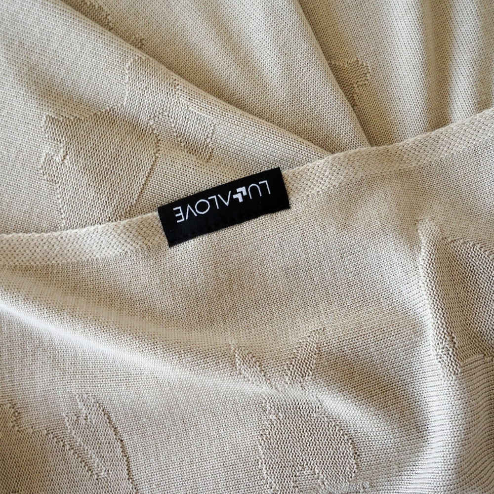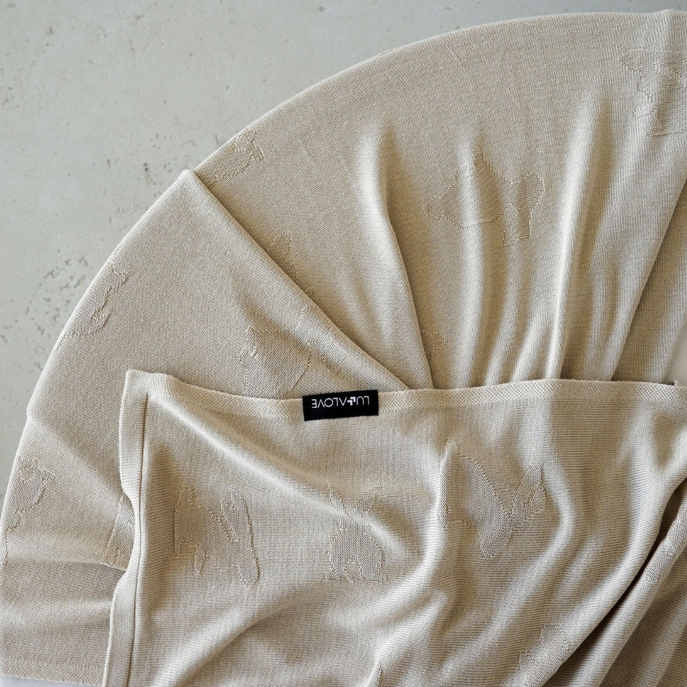 LullaLove bambufilt för vuxna bunnies beige är en filt tillverkad av bambu som är arrangerad i präglade kaniner.