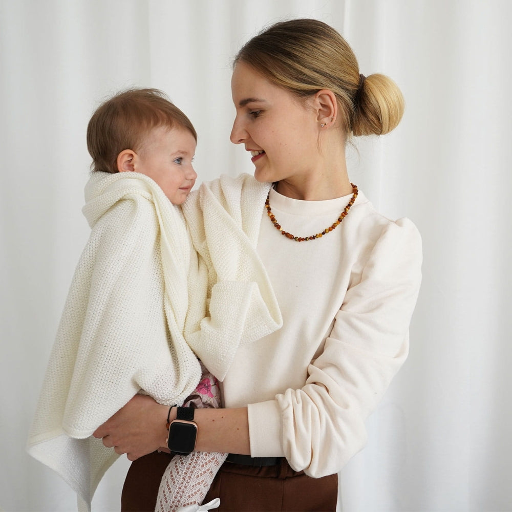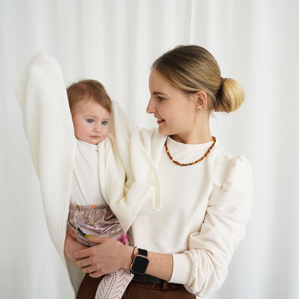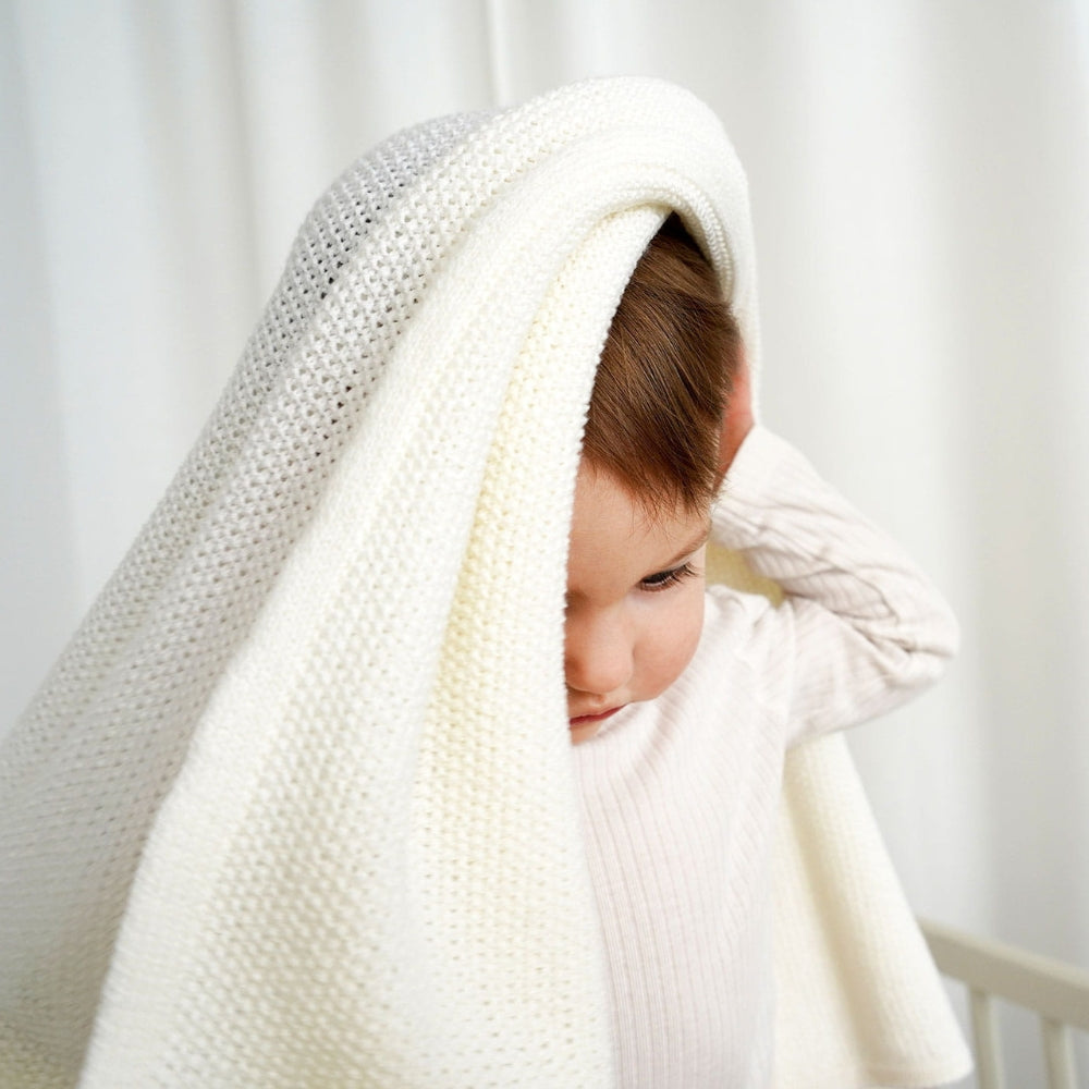 Den mjuka filten i merinoull kan också användas som babysäng i vitt från LullaLove.