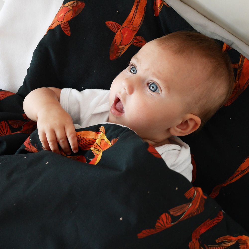 Ett unikt året runt-täcke för baby och småbarn Karpie Koi från Lullalove.