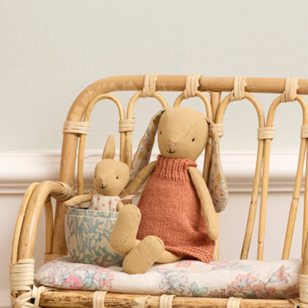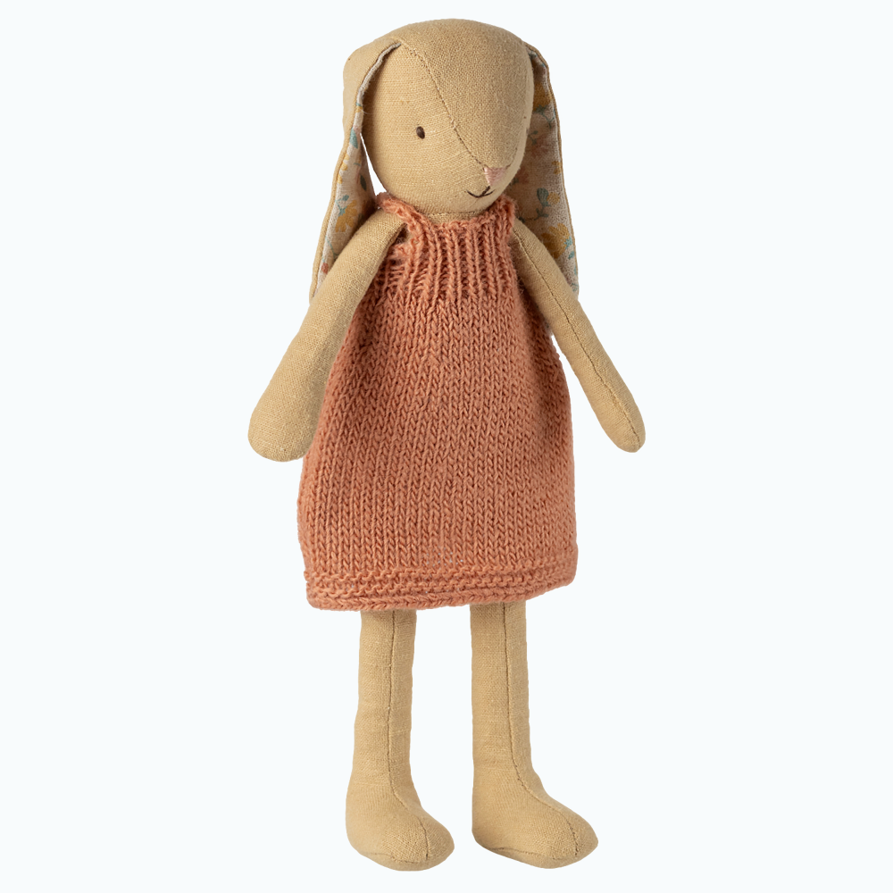 Der Hase im Kleid von Maileg ist ein klassisches, weiches Kuscheltier aus natürlichen Stoffen, das von der ersten Berührung an durch seine Weichheit und seinen Charme begeistert.