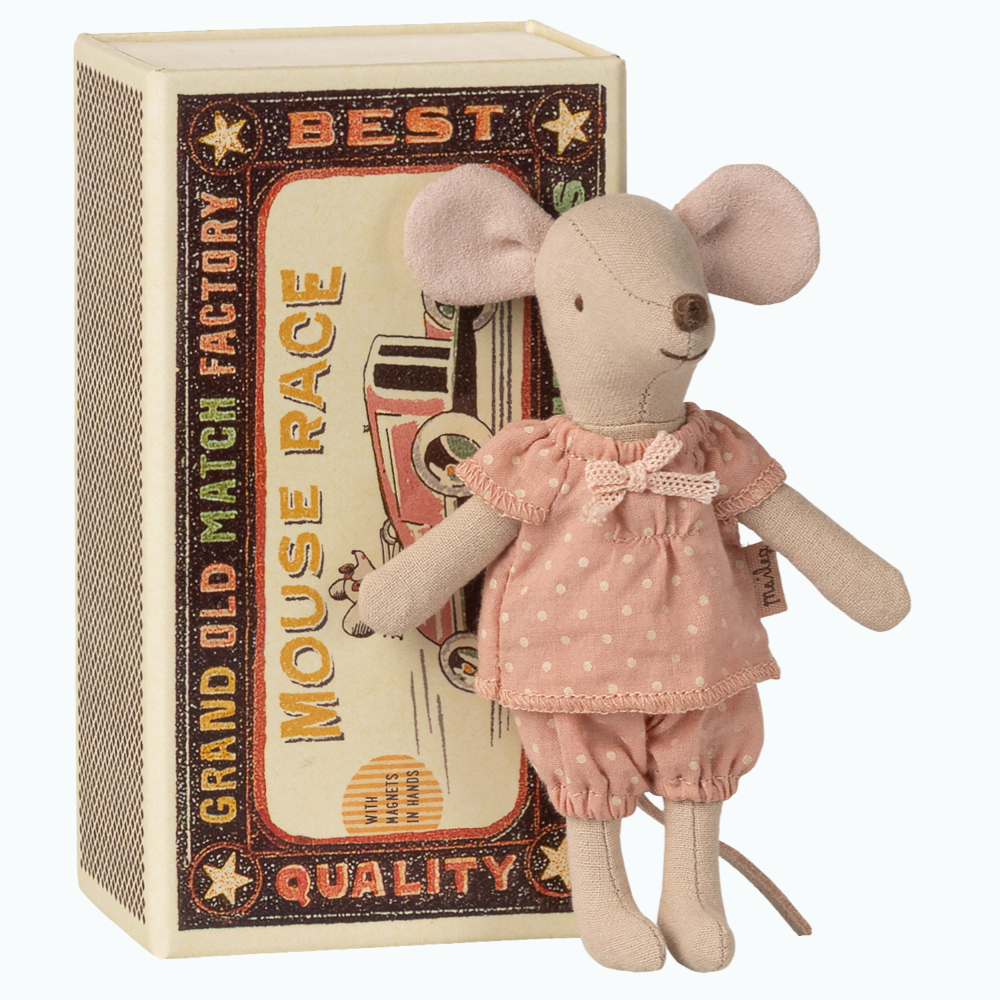 Mouse in a Box ist ein klassisches Maileg-Design, bereit für stundenlangen Spaß und süßen Schlaf in einer kleinen Streichholzschachtel.