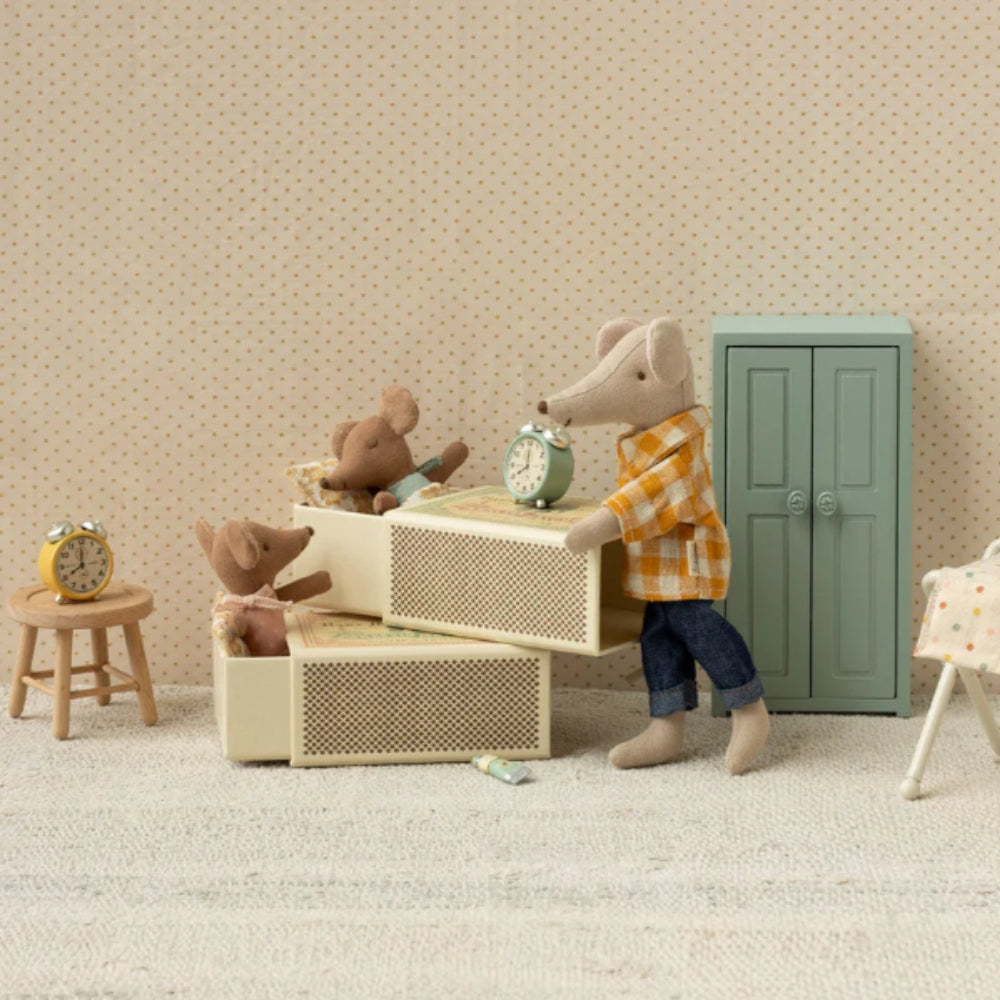 De mjuka tygerna som används till kläderna och sängkläderna är dekorerade med subtila mönster och vackra färger, vilket gör varje Maileg-mus till en unik följeslagare för barnens äventyr.