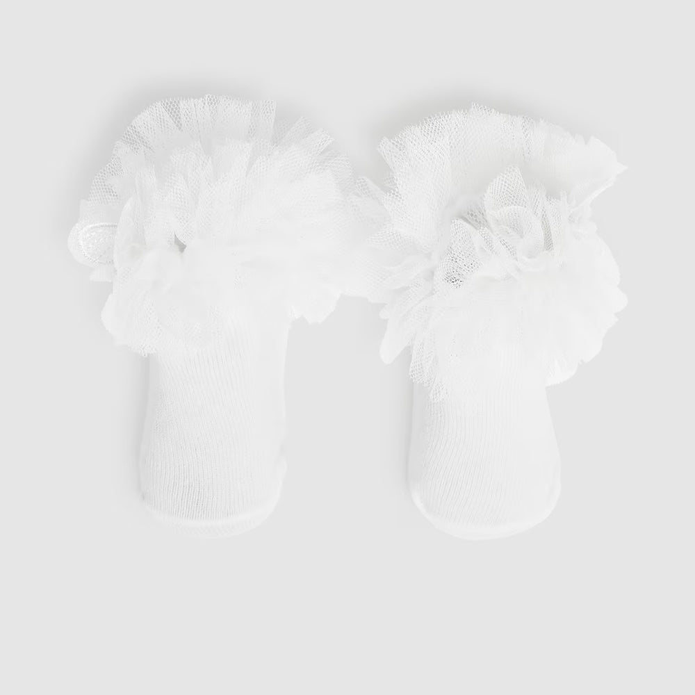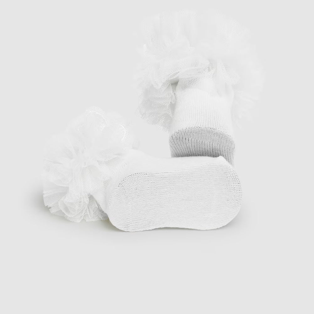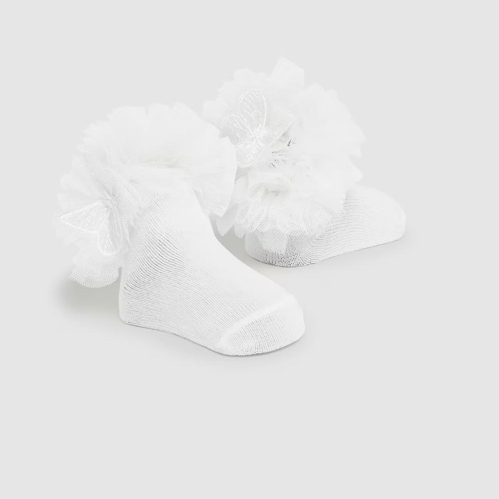 Mayoral babysockor och babyhårband med rosett, krämfärgat