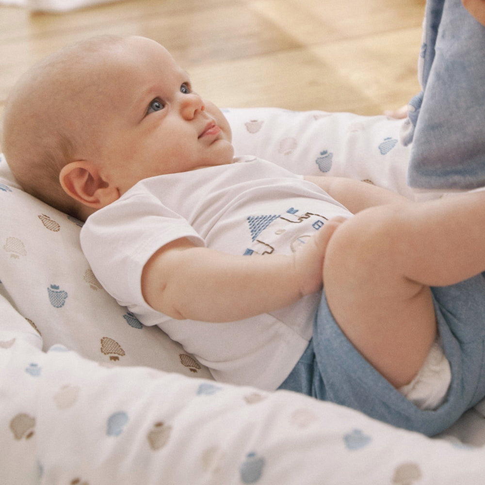 Den är mångsidig och kan användas vid matning, gungning, bad eller byte.