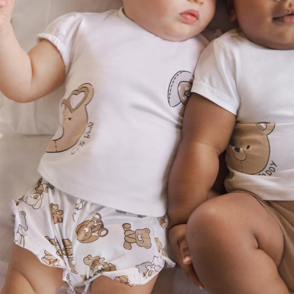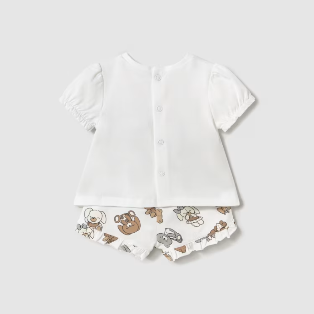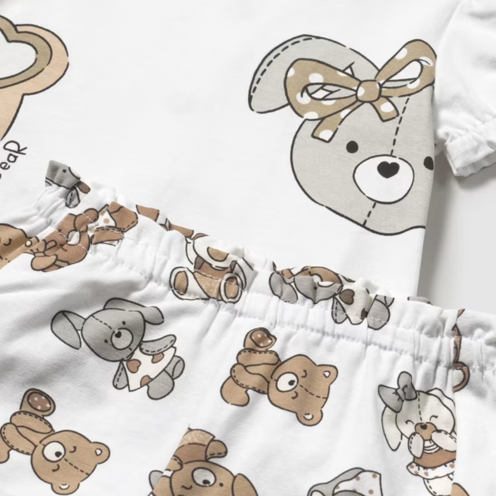 Setet består av en kortärmad T-shirt och shorts, vilket ger ditt barn fullständig komfort och rörelsefrihet i alla situationer.