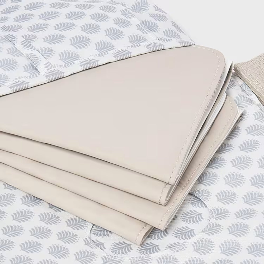 Produkten kombinerar två funktioner - den som organisatör och den som bekvämt skötbord - och är därför en oumbärlig följeslagare på promenader och resor.