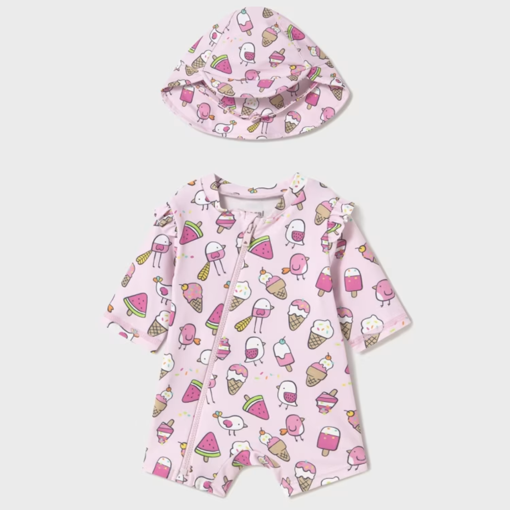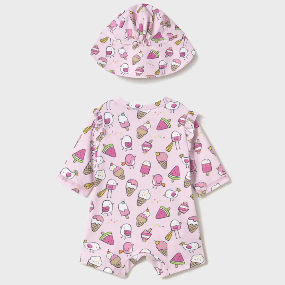 Mayoral Tvådelad pyjamasbaddräkt med babyhatt, rosa