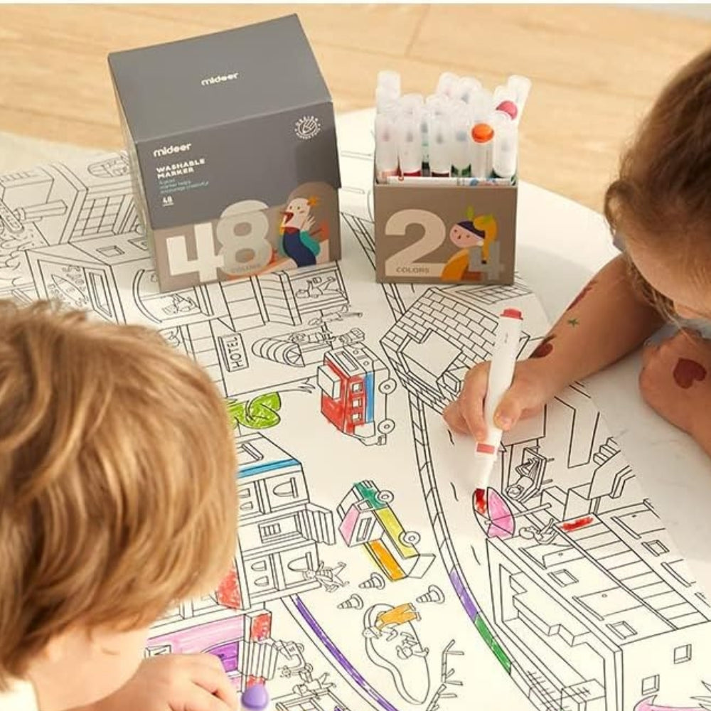 Mideers set med 48 tvättbara pennor är det perfekta valet för små konstnärer som älskar att experimentera med färger.