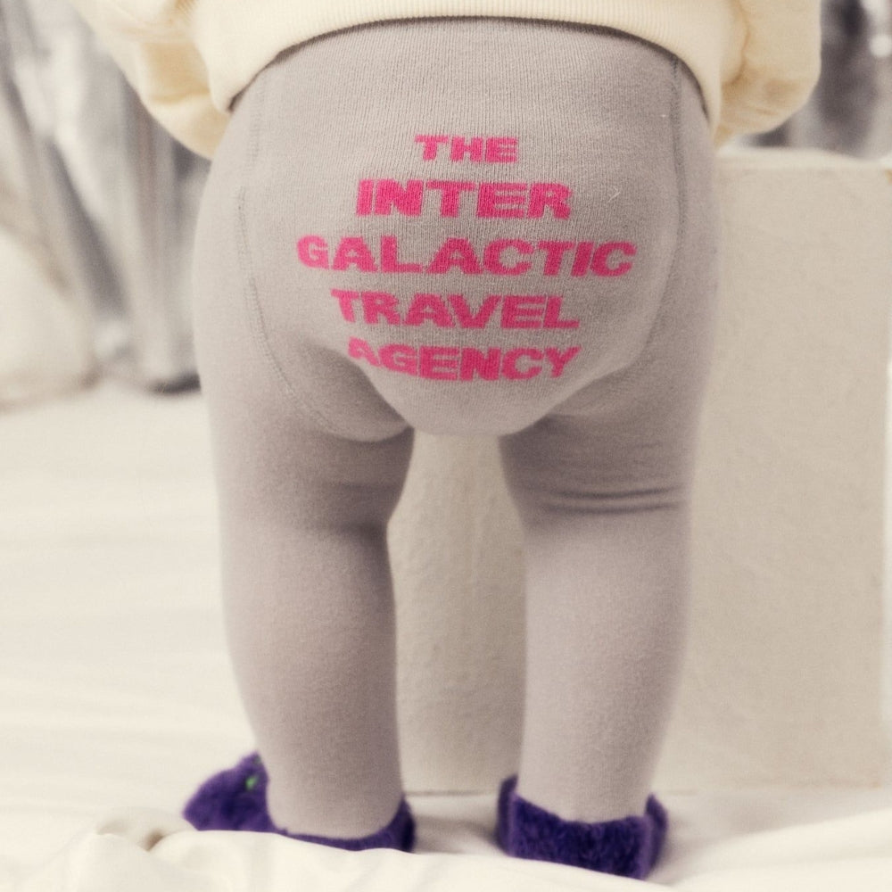 Die dekorativen Sterne an den Beinen und der Schriftzug "The Inter Galactic Travel Agency" auf der Rückseite unterstreichen den kreativen Stil, für den Mini Rodini bekannt ist.