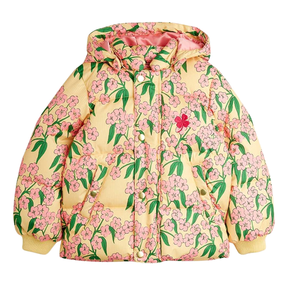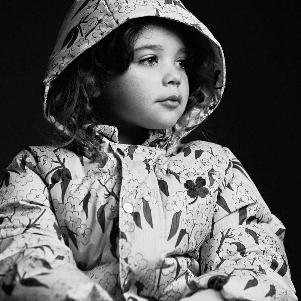 Alpine flowers dunjacka med huva för barn från Mini Rodini.