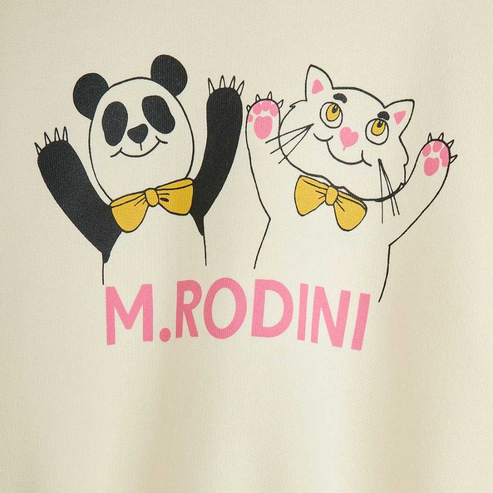 Mini Rodini Barnsweatshirt Panda and Cat Offwhite